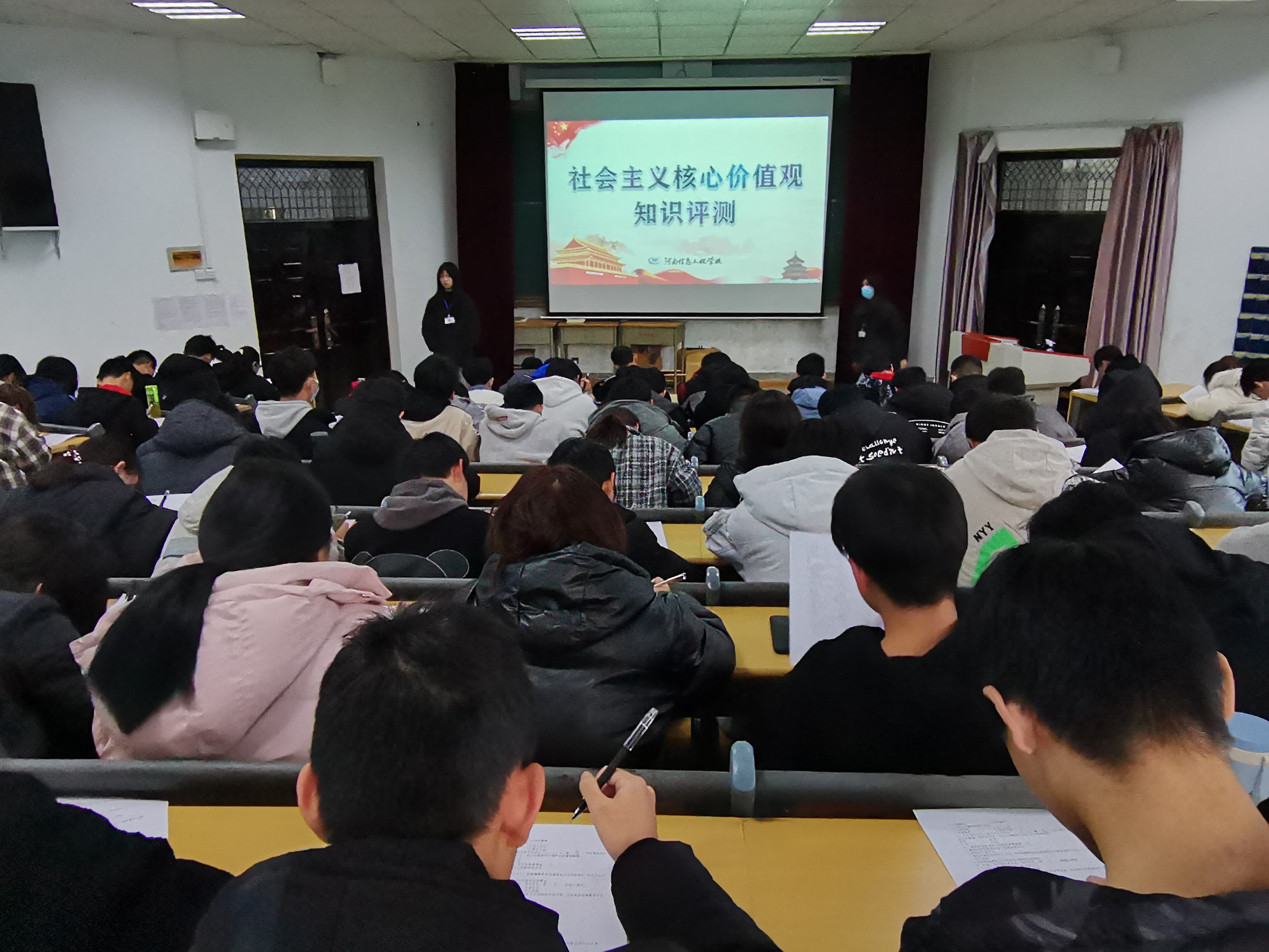 本次活动在每个班级随机抽调两人以试卷作答的形式进行测评,其目是为了扎实推动我校青年学生核心价值观建设不断向广度与深度拓展,同时,进一步掌握我校学生对于社会主义核心价值观的学习情况,勉励其更加深刻的理解社会主义核心价值观的内容,真正做到“内化于心,外化于行”,努力争做一名优秀的中职生。