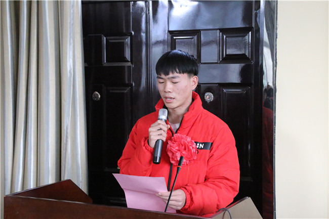 获奖学生代表张春祥做了发言,表达感恩之情:“感谢党和国家及学校给他们这次机会,感谢老师的培育之恩,表示要把获得国家奖学金这份至高荣誉化为学习的动力,会更加刻苦的学习,争取以优异的成绩来回报国家和学校对他们的关爱”。