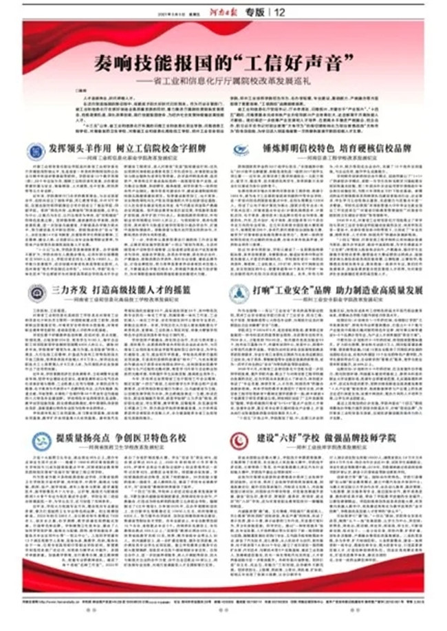 《河南日报》重磅报道 | 锤炼鲜明信校特色 培育硬核信校品牌