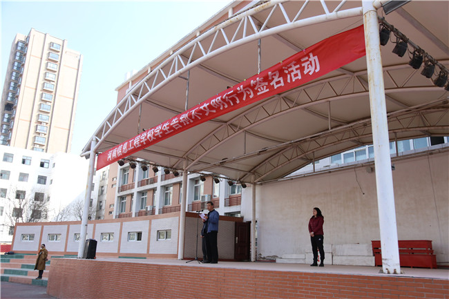 我校举行“向不文明行为告别”宣誓签名仪式