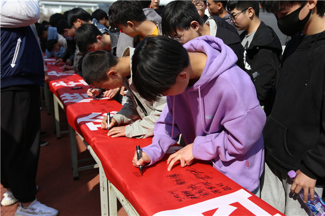 阳春三月,欣欣向荣,新学期,新气象。3月9号下午,我校在校生3700余人齐聚操场,举办了“向不文明行为告别”的宣誓签名仪式。仪式由学生处副处长李冉主持,学生处冀红海处长和蒋惠英副处长及全体班主任参加了仪式。