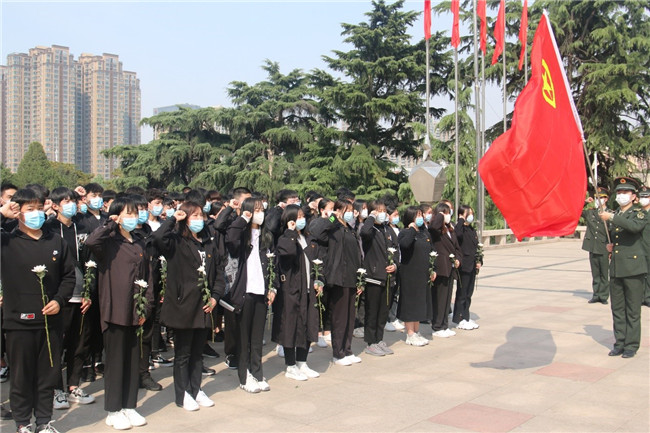 一寸山河一寸血,一抔热土一抔魂。为庆祝中国共产党成立100周年,深入开展党史学习教育活动,缅怀英雄先烈,讴歌民族英雄,传承红色基因,激发我校师生爱党爱国情怀,4月6日,在宋廷楷副校长的带领下,我校党员代表和团员青年代表150人,抵达郑州烈士陵园,开展了“缅怀英烈,铭记英雄”清明祭英烈主题活动。