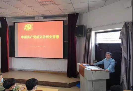 为深化两校党史学习教育,开展党史学习教育进课堂、进团校、进社区活动,4月13日,我校邀请历史知识丰富的杨波老师以《中国共产党成立的历史背景》为题为团员青年做专题讲座。