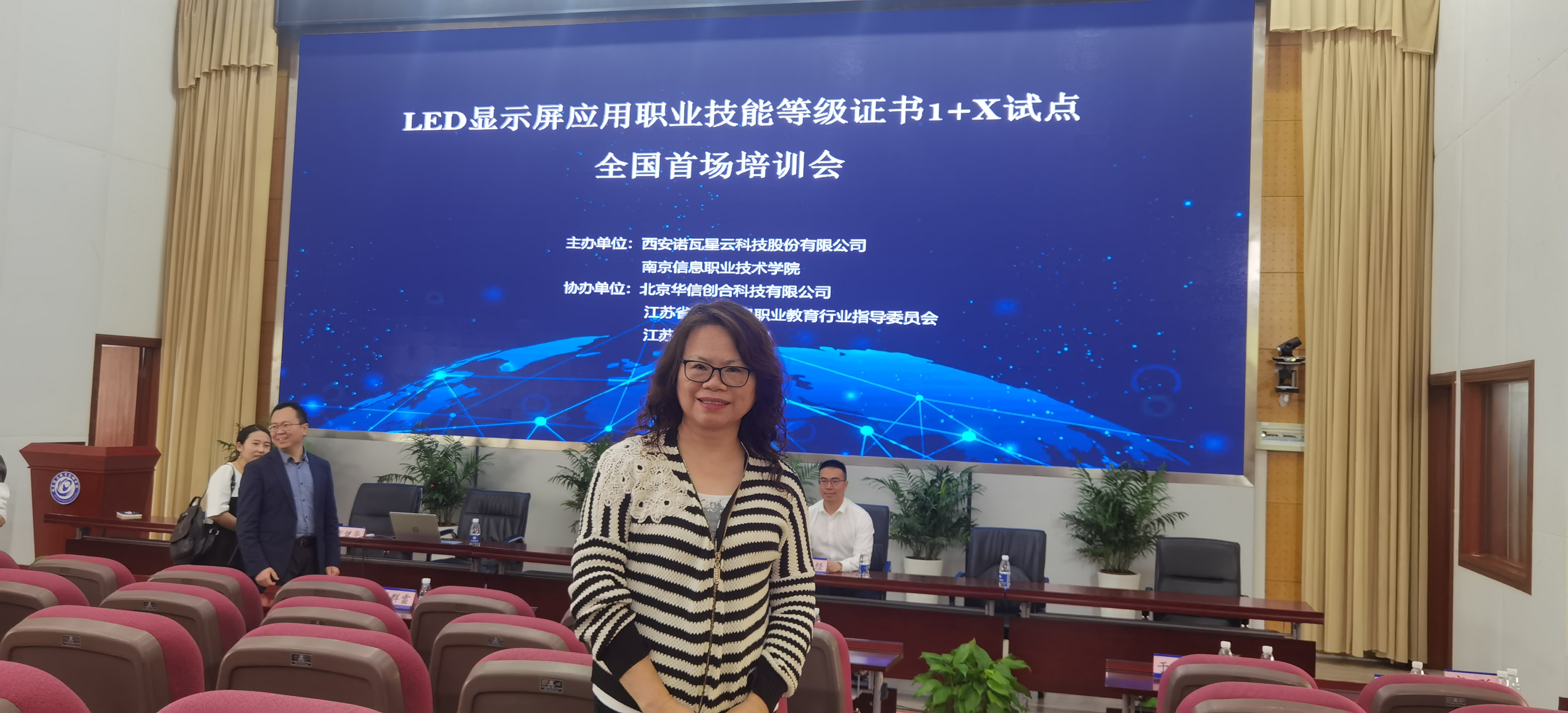 为深入贯彻《国家职业教育改革发展实施方案》和《关于在院校 实施“学历证书+若干职业技能等级证书”制度试点方案》等文件精神,助力各职业院校更深入了解LED显示屏应用职业技能等级证书的技能标准、考核评价方式、申报流程等内容。西安诺瓦星云科技股份有限公司联合南京信息职业技术学院,于2021年4月27日 -29日召开LED显示屏应用职业技能等级证书1+X试点全国首场培训会。我校电子工程系彭学勤老师作为我校代表参加了本次会议。