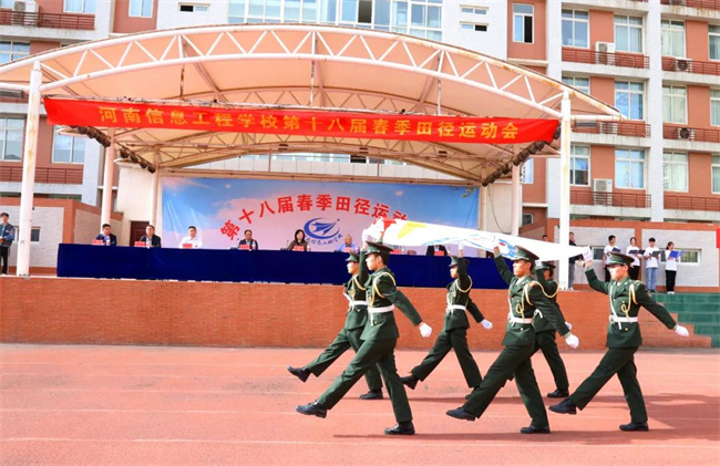 4月29日上午,信校体育场红旗飘扬、音符嘹亮——河南信息工程学校第十八届春季田径运动会开幕式精彩开启。