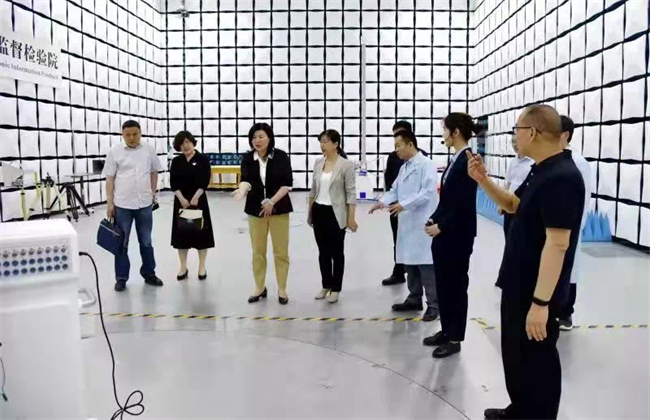 黄磊校长一行首先参观了电磁兼容、电气安全、无线电、非金属材料等十余个实验室,详细了解了实验室建设、仪器设备、检测能力等情况,结束参观后与质检院领导及相关部门负责同志进行了座谈交流。