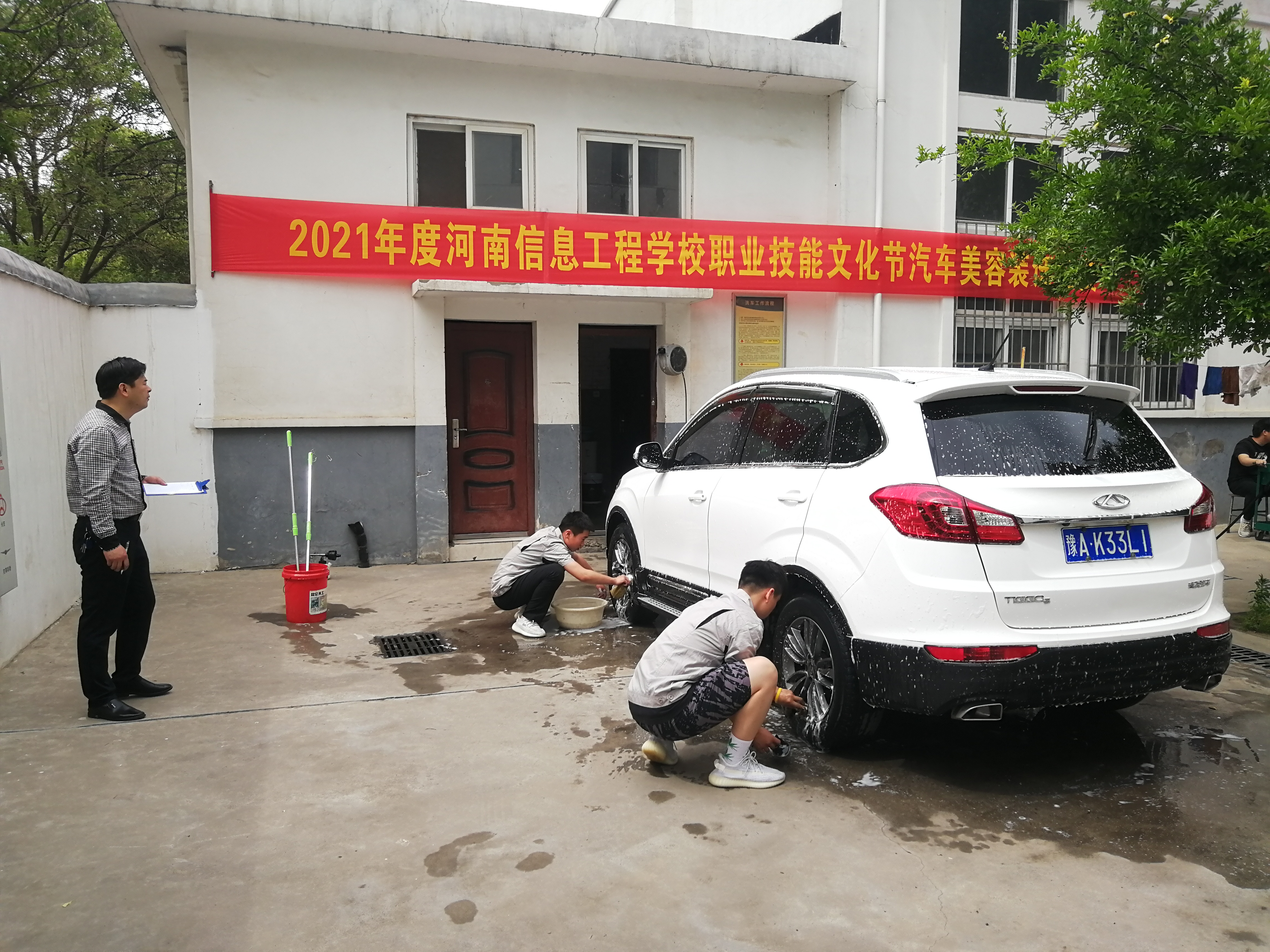 汽车教研室组织2020级汽车运用与维修专业学生开展汽车美容装饰竞赛,经过教师对四个班级的前期选拔,共有8组选手进入今天的决赛,比赛以小组为单位,两人一组,随机抽签进行汽车美容装饰,竞赛从冲车、打泡沫、第二遍冲车、漆面、门边底边、吹气内室、吸尘、验车和最终整理八个步骤进行细致评比打分。