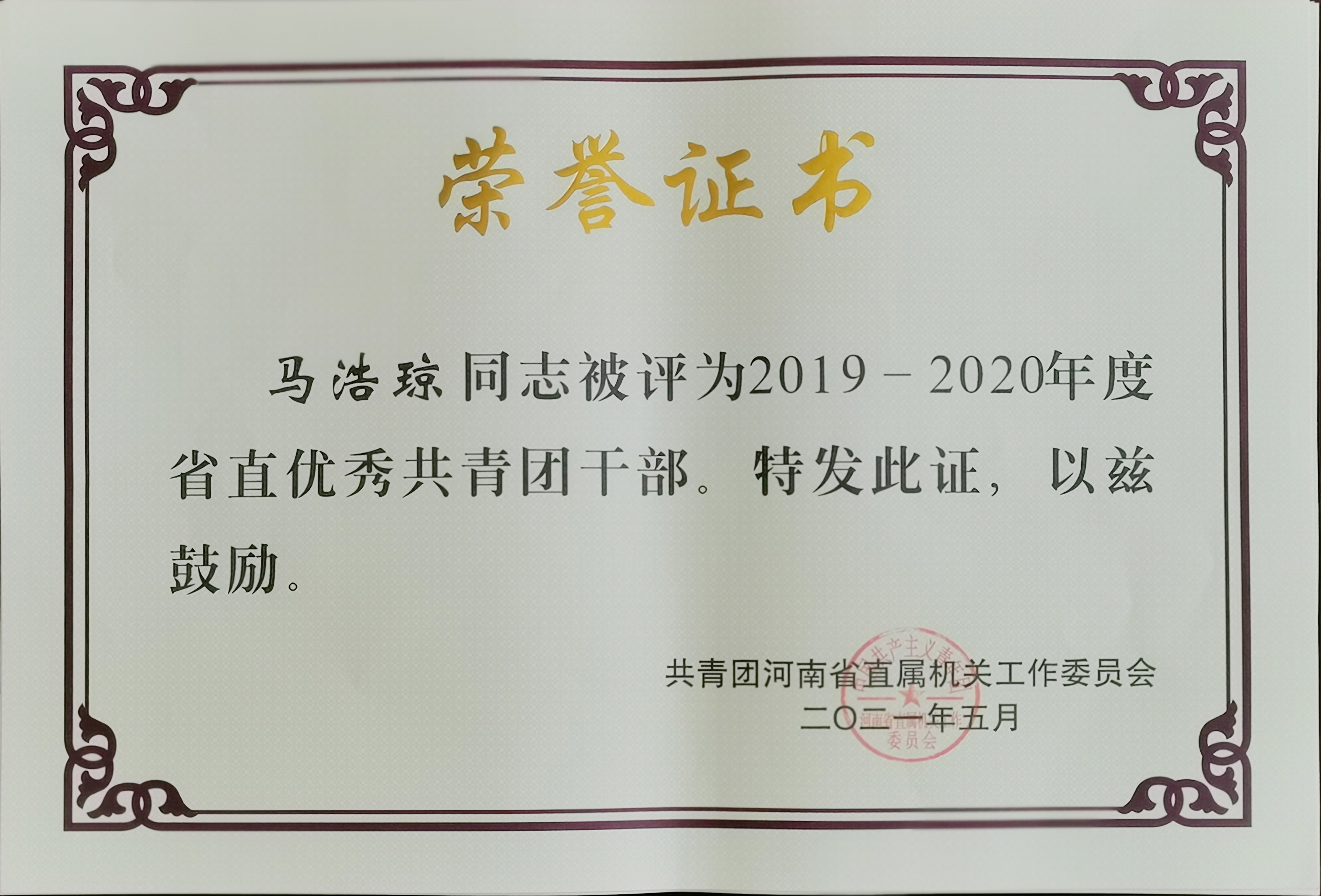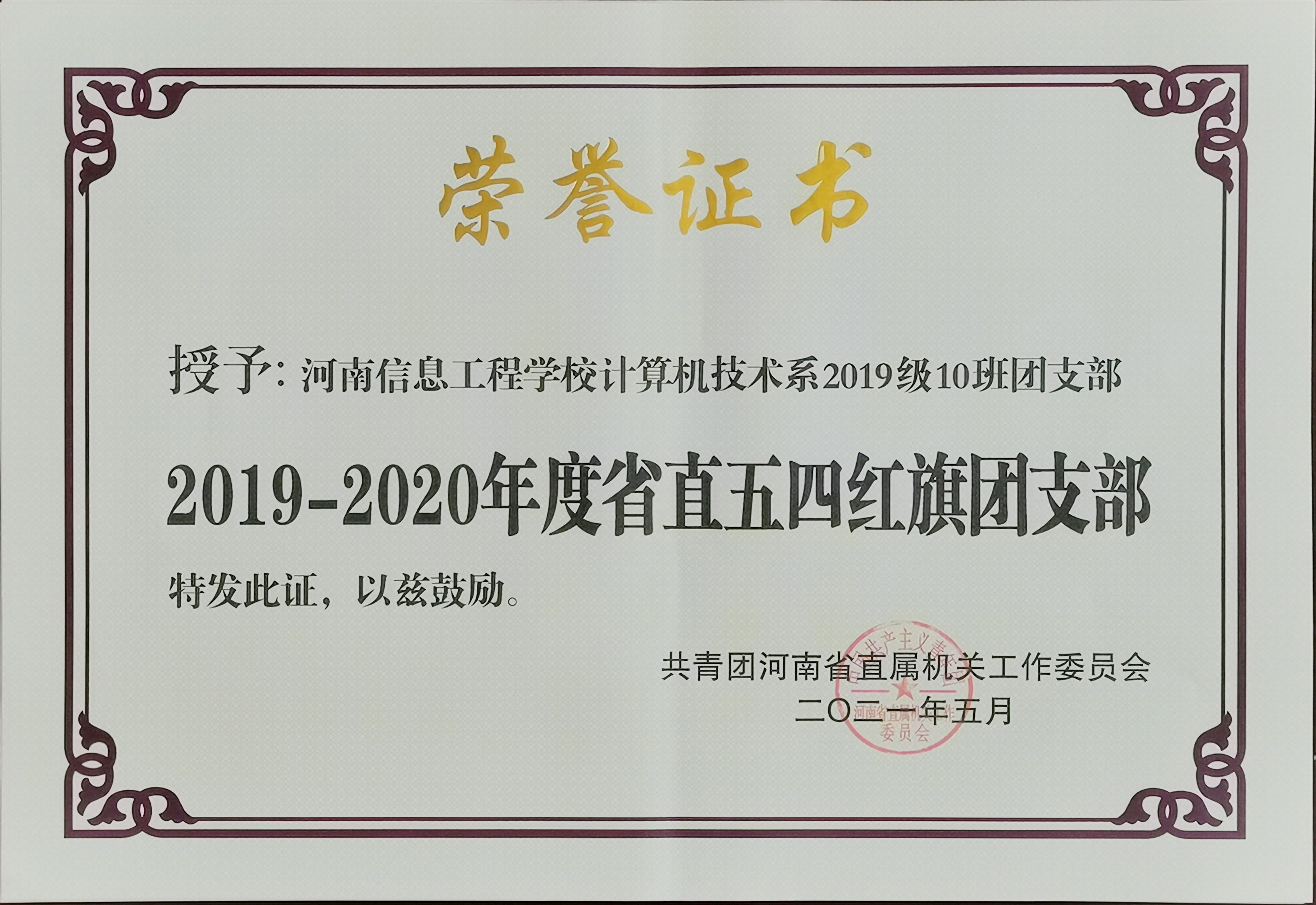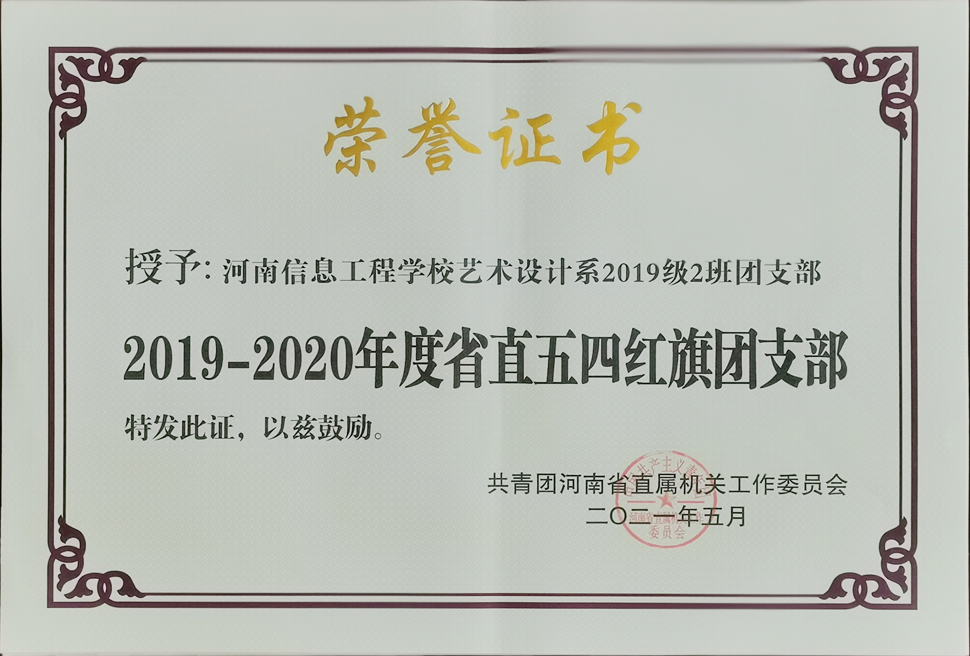 为表彰先进、树立典型,激励我校广大团员团干部不懈奋斗,再创佳绩,经过考核评比,校团委推荐,校领导审核,上报至省直团工委评定通过,艺术设计系2019级2班团支部、计算机技术系2019级10班团支部获得“省直五四红旗团支部”荣誉称号,吴雅烁、张爽、王豪杰获得“省直优秀共青团员”荣誉称号,屈化冰、马浩琼获得“省直优秀共青团干部”荣誉称号。