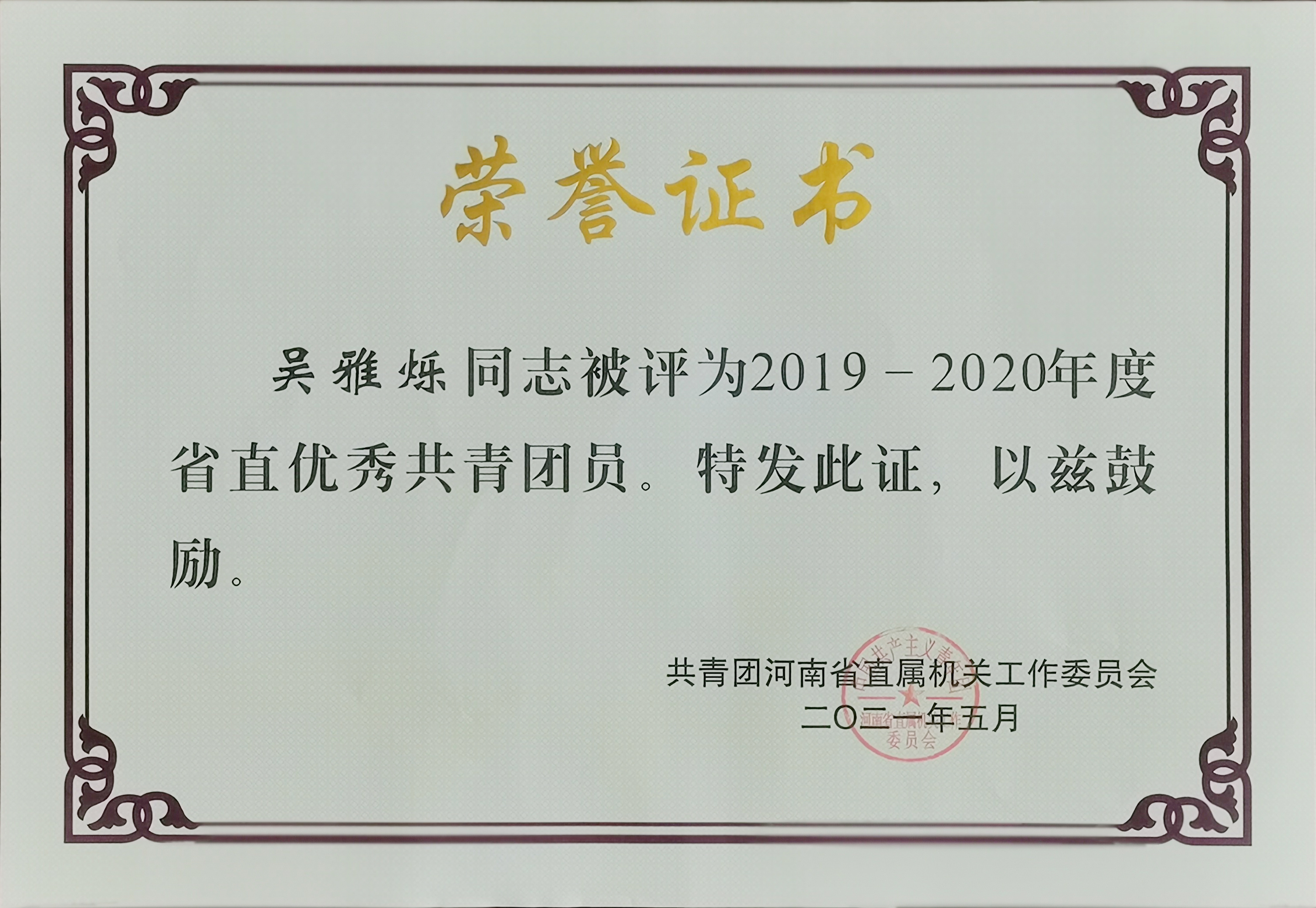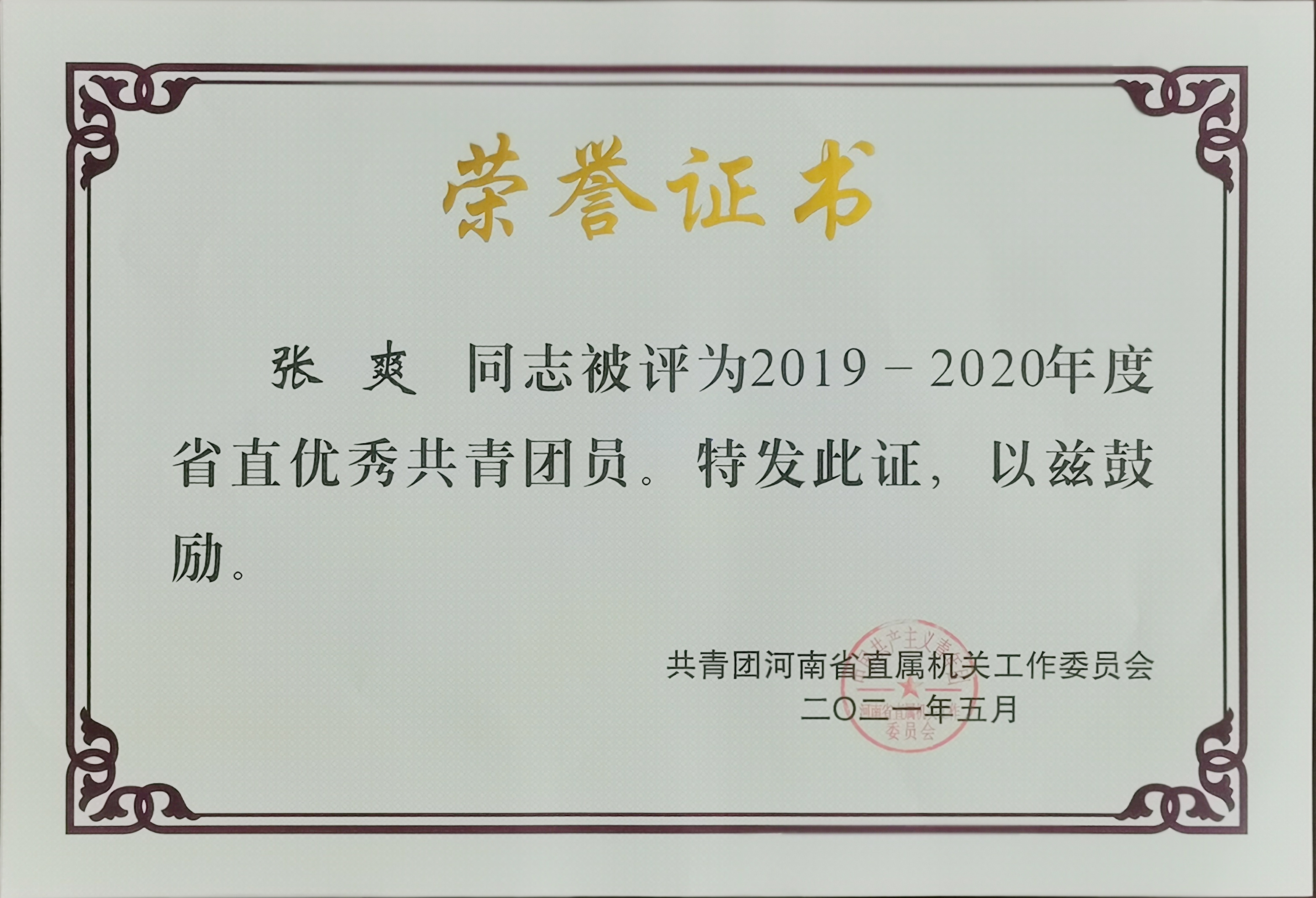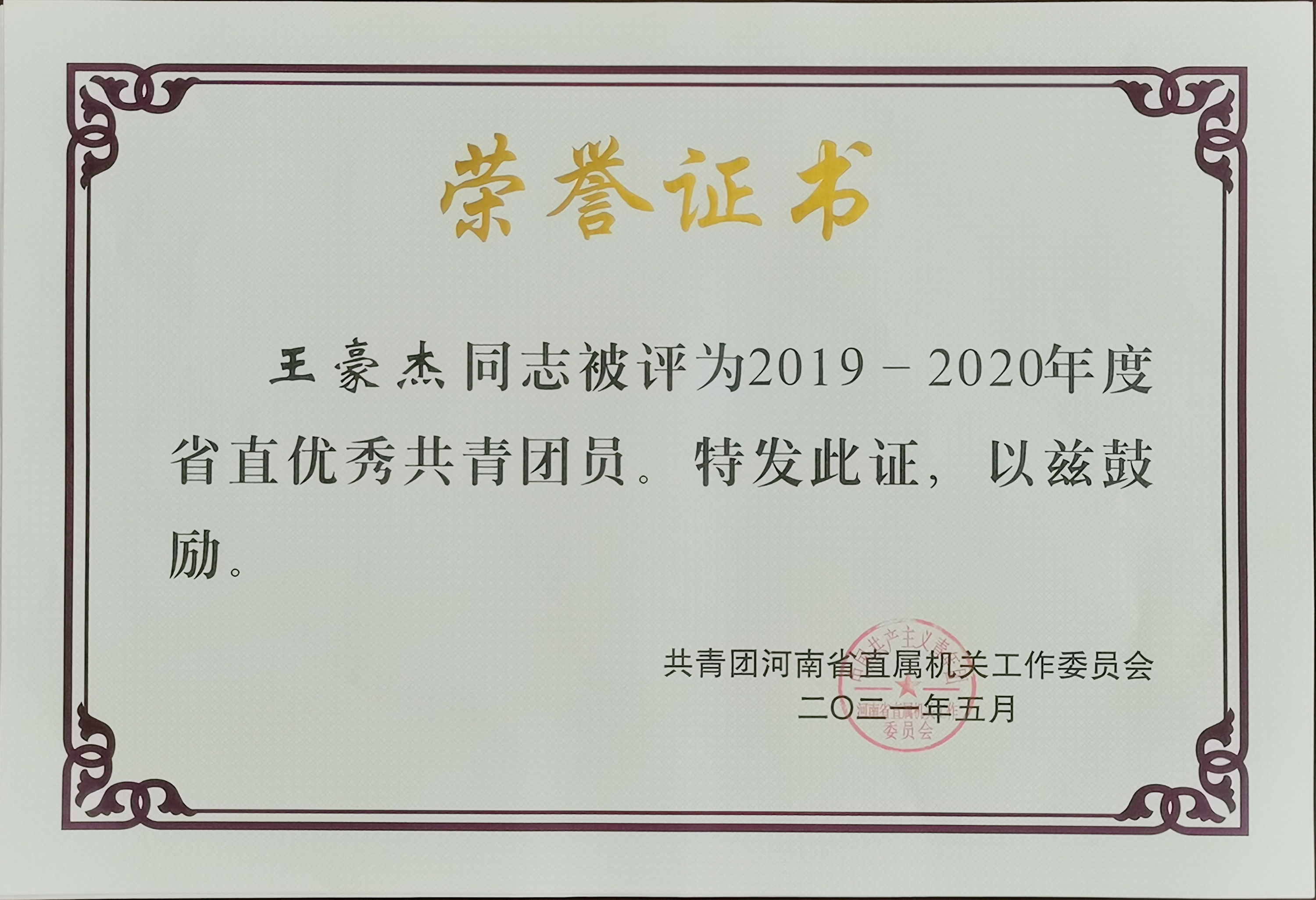 为表彰先进、树立典型,激励我校广大团员团干部不懈奋斗,再创佳绩,经过考核评比,校团委推荐,校领导审核,上报至省直团工委评定通过,艺术设计系2019级2班团支部、计算机技术系2019级10班团支部获得“省直五四红旗团支部”荣誉称号,吴雅烁、张爽、王豪杰获得“省直优秀共青团员”荣誉称号,屈化冰、马浩琼获得“省直优秀共青团干部”荣誉称号。