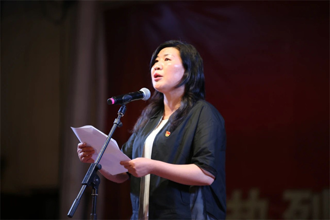 黄磊校长发表了热情洋溢的讲话,她指出,我们要感恩中国共产党的领导,没有共产党,就没有新中国,更没有我们现在的幸福生活。在党和国家的大力支持下,使我们学校走过了极不平凡的历程,从建校时两个班上百名学生发展到现在近12000人的在校生规模,办学条件和教学质量发生了天翻地覆的巨大变化。新时代、新机遇、新目标、新征程,又使信校焕发出了蓬勃的生机与活力。当今世界正处在百年未有之大变局,中国正处在发生深刻历史变革的伟大时代,让我们高举中国共产党的伟大旗帜,自觉做到坚持“四个自信”、坚决做到“两个维护”,抢抓职业教育发展的难得机遇,以“功成不必在我和功成必定有我”的气魄和担当,戮力同心、攻坚克难、勇攀高峰,全面推进两校融合发展再上新台阶,为两校“五年规划”开好局、起好步,不断创造两校融合发展新的辉煌!