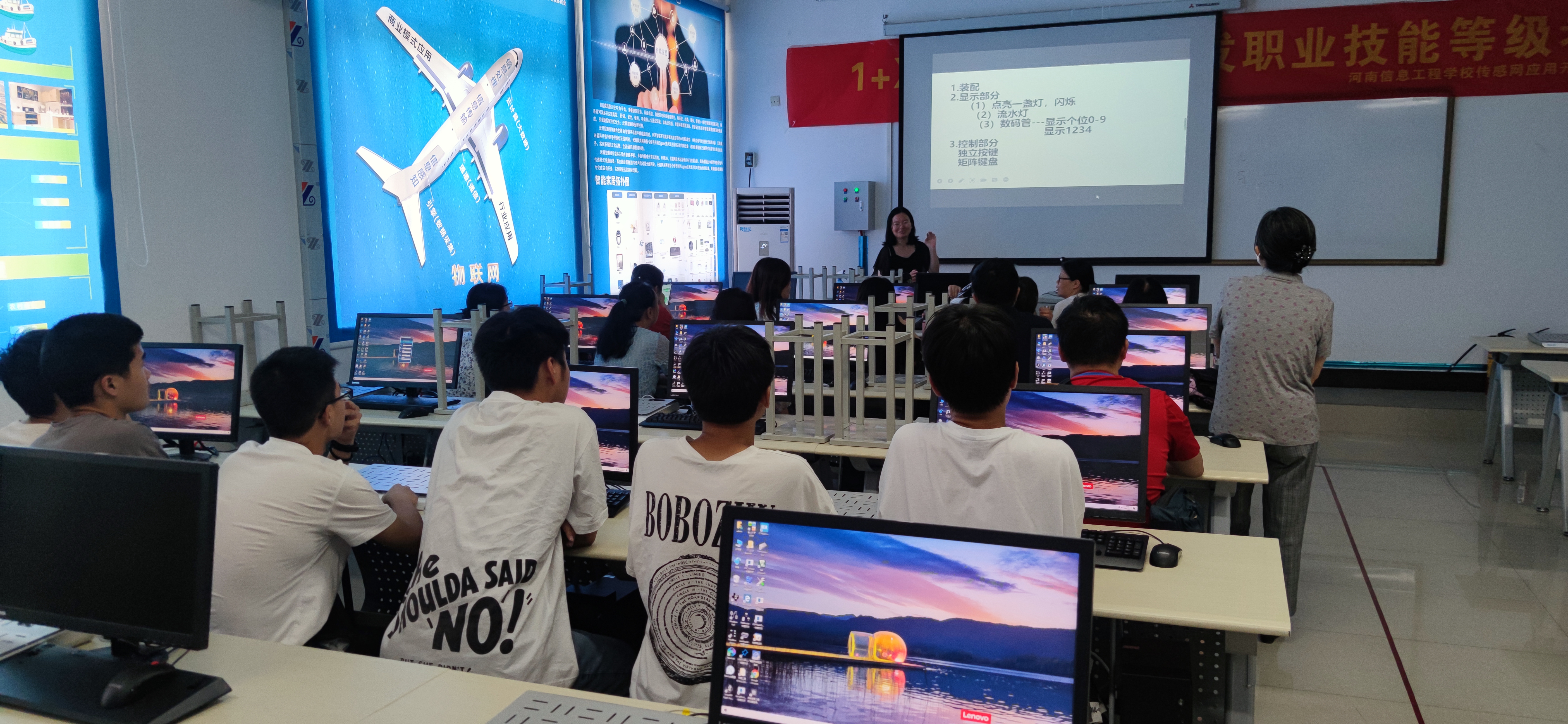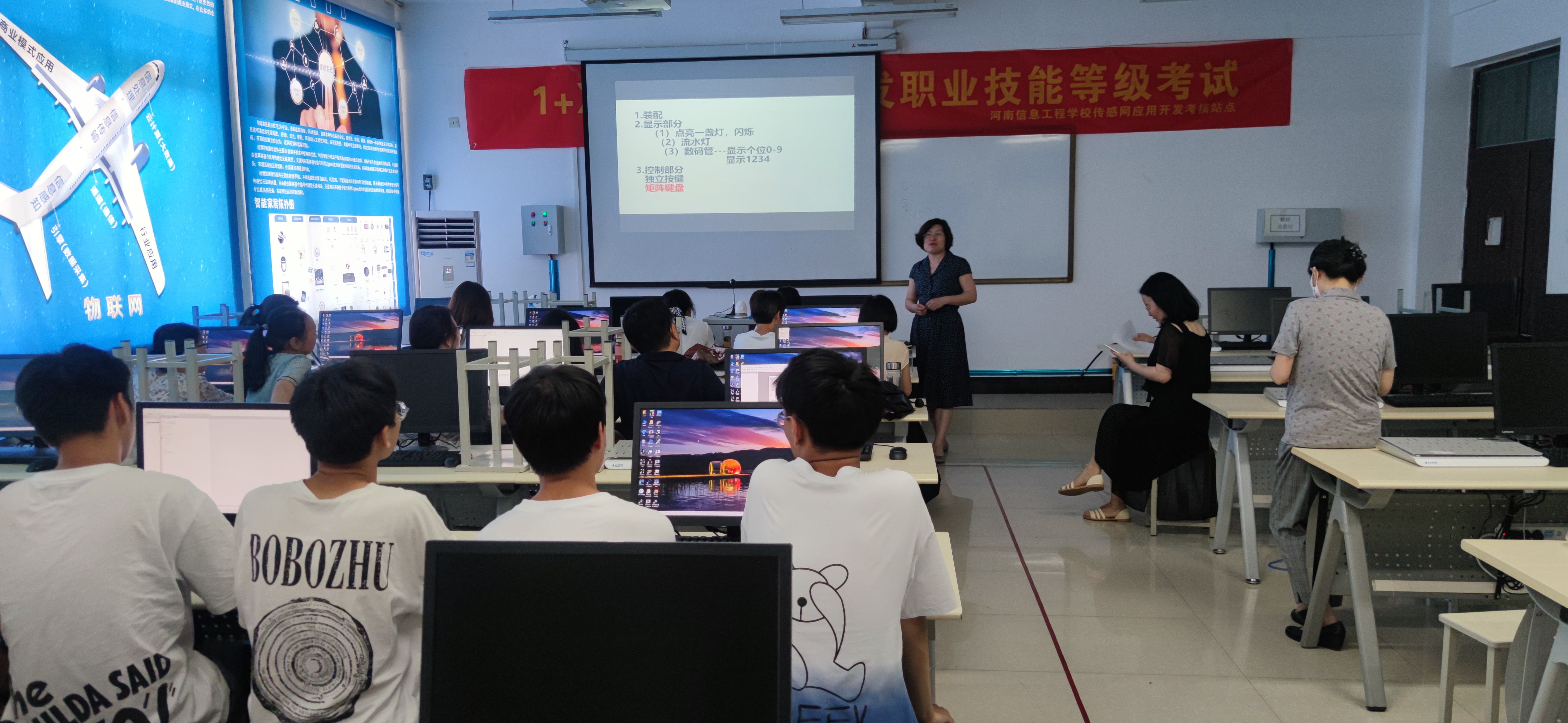根据我校《关于2021年暑假放假的通知》的文件中关于各系、专业错峰放假的要求,20级电子工程系专业学生补课到6月19日。为了做好补课期间的教育教学工作,2020年6月4日,我校电子工程系20级各班任课老师召开本学期补课教研活动。会上,史娟芬主任向大家传达了我校《关于2021年暑假放假的通知》文件精神,希望大家牢固树立大局意识,发扬主人翁精神,同心同德,砥砺奋进。接着,由郭蕊老师向大家讲解了补课阶段的课程安排,对所用的套件和软件进行了说明。最后大家就以上内容进行了教学研讨。