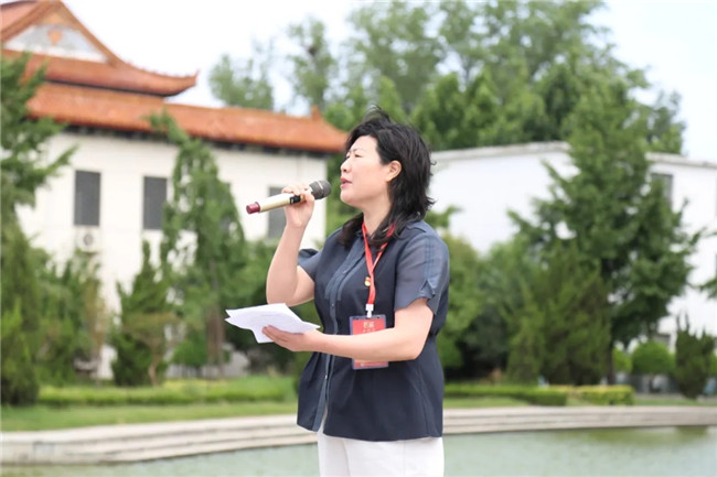 黄磊校长在开班仪式致辞中指出,在全党全国上下喜迎建党100周年之际,我们两校举办此次党史学习教育培训班,是两校党史学习教育的重要组成部分,此次我们走进新乡先进集体教育基地,通过看实物、听讲解、互动体验,接受红色洗礼,在学党史中“明理悟道、增信铸魂、崇德尚贤、力行担当”,从党的百年伟大奋斗历程中汲取前进的智慧和力量。最后,她对参加此次培训班的全体学员提出三点希望:一是统一思想,深刻领会党史学习教育培训的意义;二是把握主题,全面提升综合素质;三是端正态度,严守学习纪律。