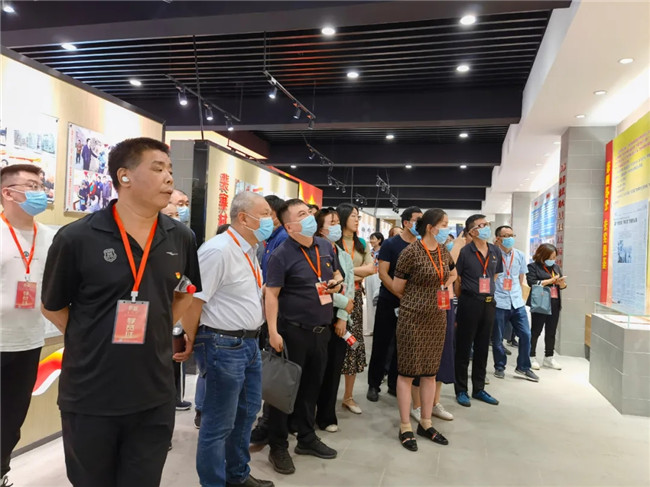 裴寨地处新乡辉县市张村乡。在裴寨社区讲解员的引领下,全体党员首先参观了裴寨村史党建展览馆,仔细聆听了讲解员对“昔日裴寨”、“感恩奉献”、“共建家园”、“夯实根基”及“展望未来”五大部分内容的介绍,了解了裴寨由落后贫穷、生活条件艰难到今天发展劲头高涨、人民生活幸福的奋斗历程,切实体会了“听党话、跟党走、同创业、共致富”的裴寨精神,尤其为裴春亮“乡亲不富誓不休”的奋斗精神而感动。 随后,大家观看了社区发展视频,实地参观了裴寨新村、裴寨水库工程及蔬菜花卉基地、裴寨村跨境电商馆等地。
