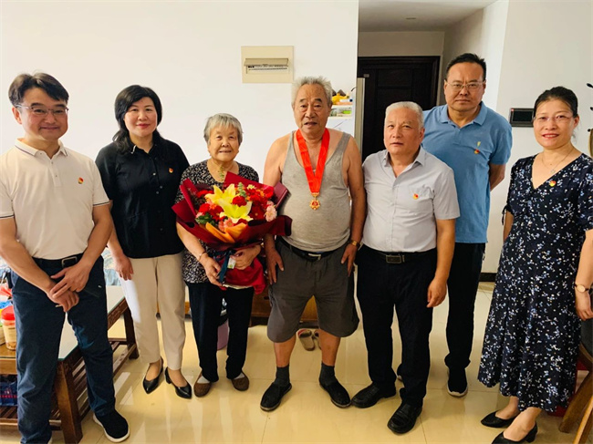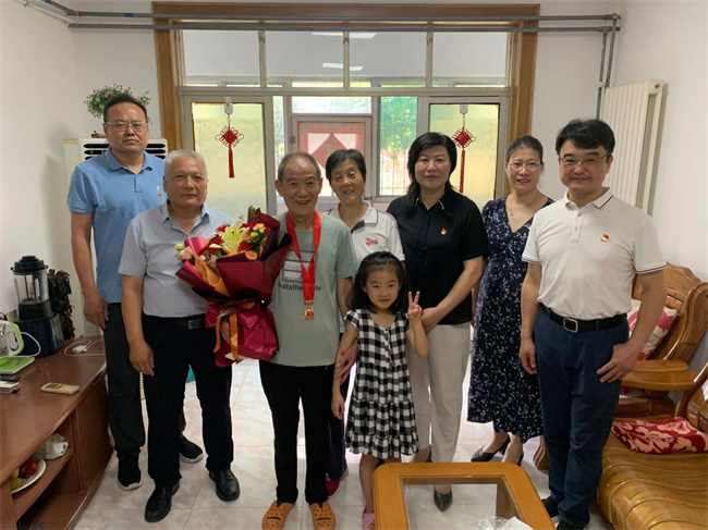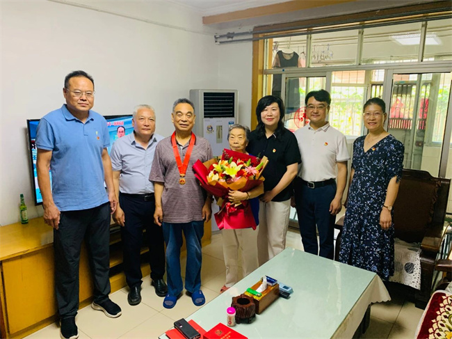 黄磊校长一行分别到五位老党员、老干部家里,向他们介绍学校目前的发展情况,详细了解他们的生活和身体情况,为他们颁发了“光荣在党50年”纪念章,送去慰问品。老党员们怀着激动的心情接受了纪念章,并感谢党组织的亲切关怀。老校长王宪政还给我们讲述了当年克服重重苦难筹建实训楼和八角楼的历史,黄磊校长对各位老党员为学校发展做出的贡献表示感谢,并嘱托各位老党员保重身体,好好享受新时代的生活, 在身体允许的情况下多参加党组织活动。