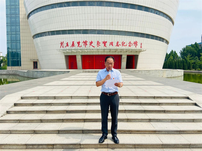 7月10日上午,烈日炎炎。开班仪式在刘庄展览馆史来贺同志纪念馆前举行。仪式由党政办副主任王宏主持,学员代表石艳发言。薛东亮副校长为本次培训班班长杨波授旗并作开班致辞。第二批培训学员共计18名同志参加此次学习。