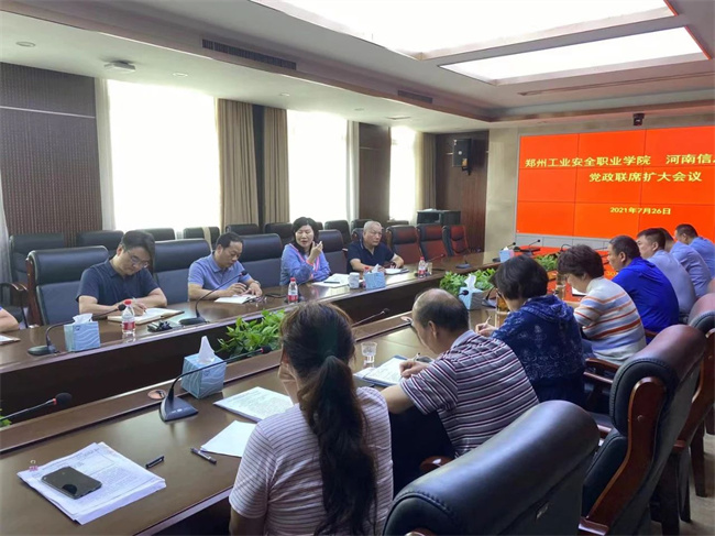 7月26日,yl6776永利集团和河南信息工程学校在学校六楼会议室召开两校党政联席扩大会议,学习贯彻习近平总书记近期重要指示精神,研究部署两校党史学习教育、防汛救灾、巡视整改等工作。会议由黄磊校长主持,副校长宋廷楷、薛东亮和六大办公室主任及党政办、人事处、教务