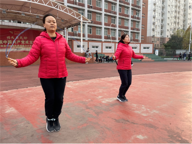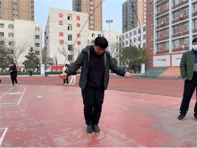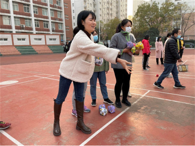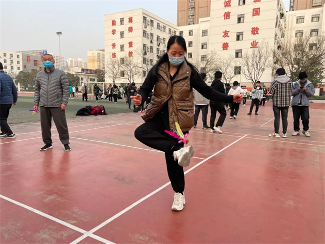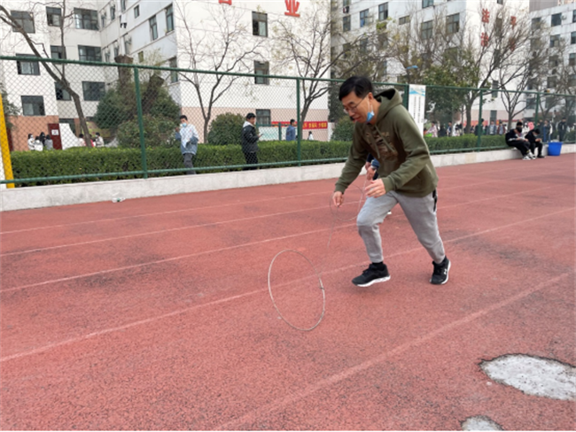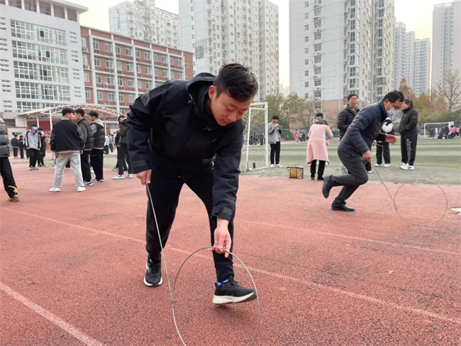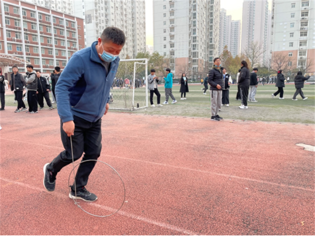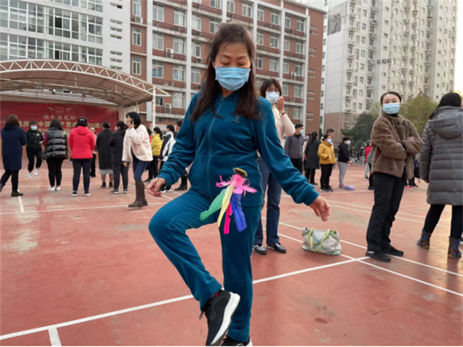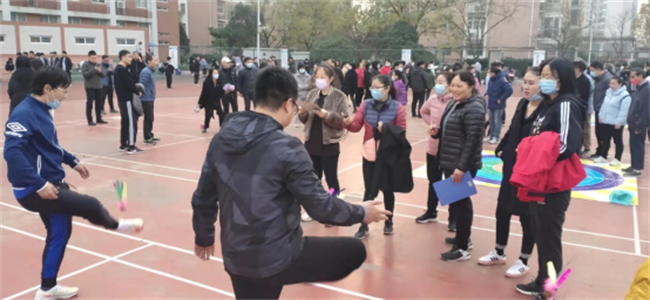 11月26日下午,在“教职工冬季体育活动周”举办的第四天,抱球跑、沙包掷准、踢毽子、跳绳、推铁环五项个人赛项目相继开赛。