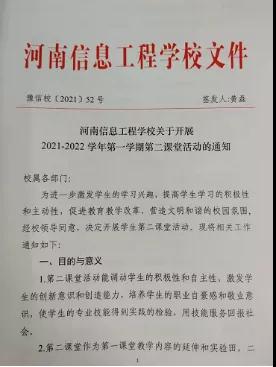 根据《河南信息工程学校关于开展2021-2022学年第一学期第二课堂活动的通知》豫信校【2021】52号文件精神,我校的第二课堂活动从第10周逐步展开。第二课堂活动能够展示学生风采,激发学生的学习兴趣,提高学生学习的积极性和主动性,从而促进教育教学改革,营造文明和谐的校园氛围。
