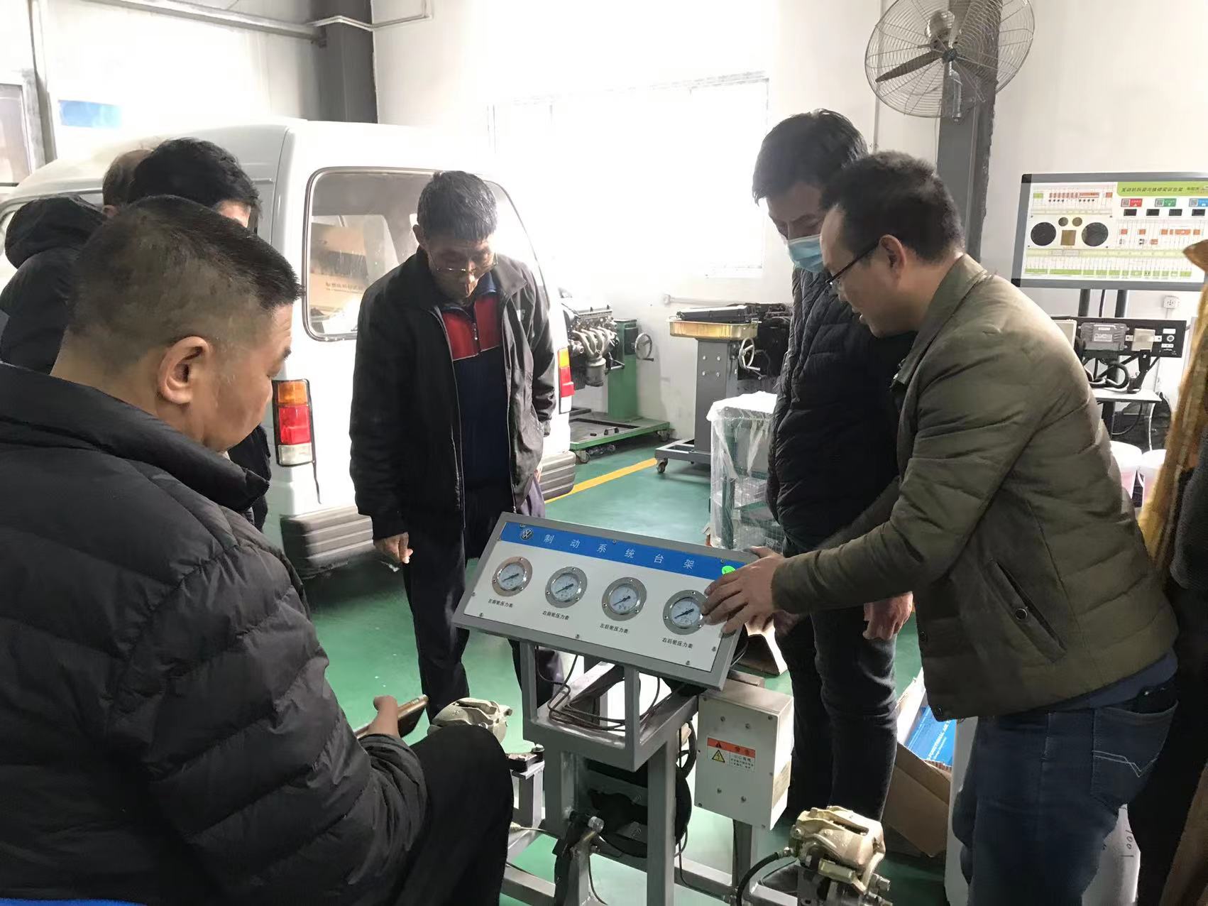 培训中,机电系专业教师学习了汽车美容相关器具的使用;调试、研讨了汽车转向、汽车制动等设备的操作;学习了扩胎机、臭氧发生器、氮气机等新设备的操作流程。