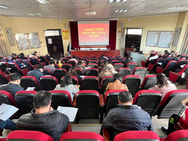 为深入学习习近平新时代中国特色社会主义思想,检查党史学习教育成效,12月21日下午,我校举办了“学党史 强信念 跟党走”知识竞赛,旨在进一步引导广大党员干部站稳政治立场,树牢信仰之基,厚植为民情怀,勇担初心使命,做到学史明理、学史增信、学史崇德、学史力行。随机抽取的近60名党员参加了比赛。