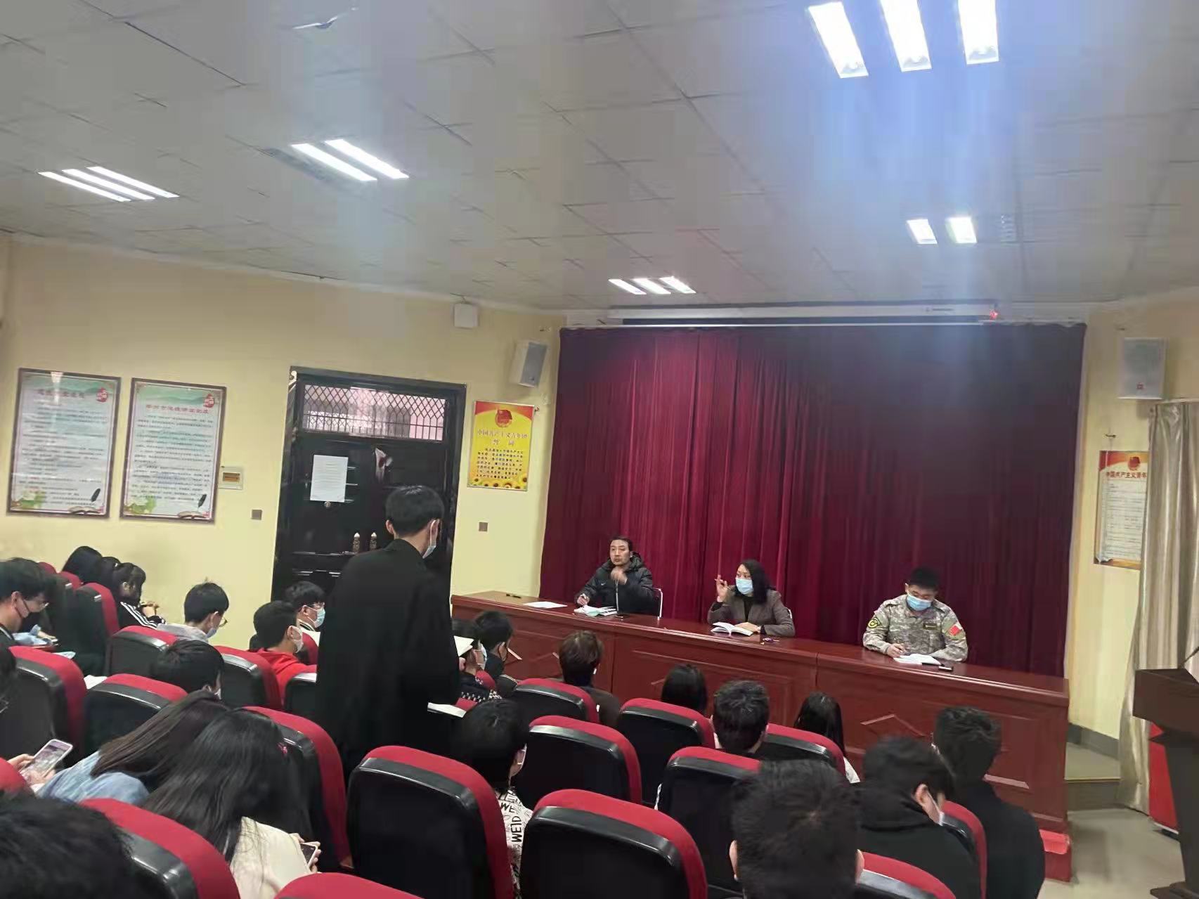 2022年3月25日,在道德讲堂召开了学生管理座谈会,主管学生工作的李冉处长、主管公寓工作的蒋蕙英处长、学生总教官秦超以及全校101个班级派出的代表参加了本次座谈会。