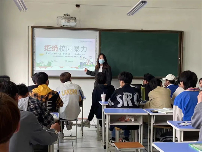 紧接着,班主任向同学们介绍了具体案例,利用图片、视频等多媒体手段直观地展示了校园暴力给受害者带来的伤害及严重后果,学生从言语、行为、社交等方面全方位地了解了校园暴力的表现形式和危害。