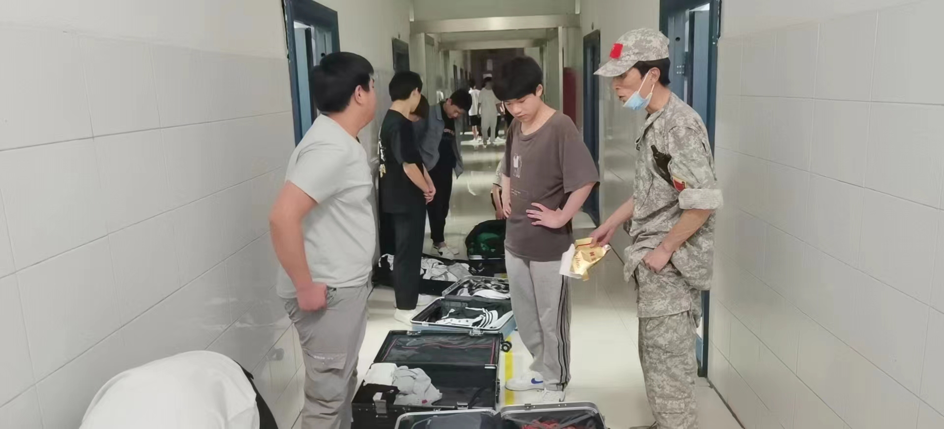 晚上7:30,教官团队根据制定的方案,开始对5号宿舍楼进行检查。我校保卫处刘万顺处长及学生处蒋惠英副处长及相关班主任亲临一线。此次安全检查主要针对宿舍使用违规电器、私拉电线及违规携带烟、酒、火机及管制刀具等潜在安全隐患进行仔细排查。在检查的同时,向学生进行安全宣传教育,希望学生增强安全防范意识,尤其注意宿舍内不得使用明火和违章用电等,不使用违章电器,防患于未然。