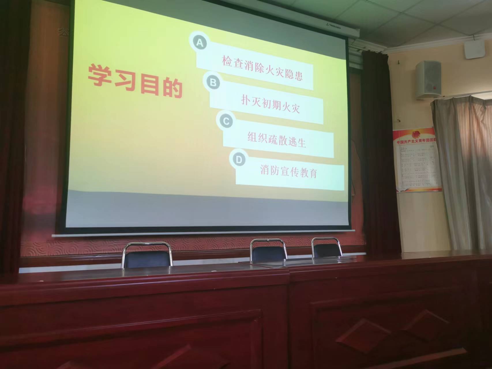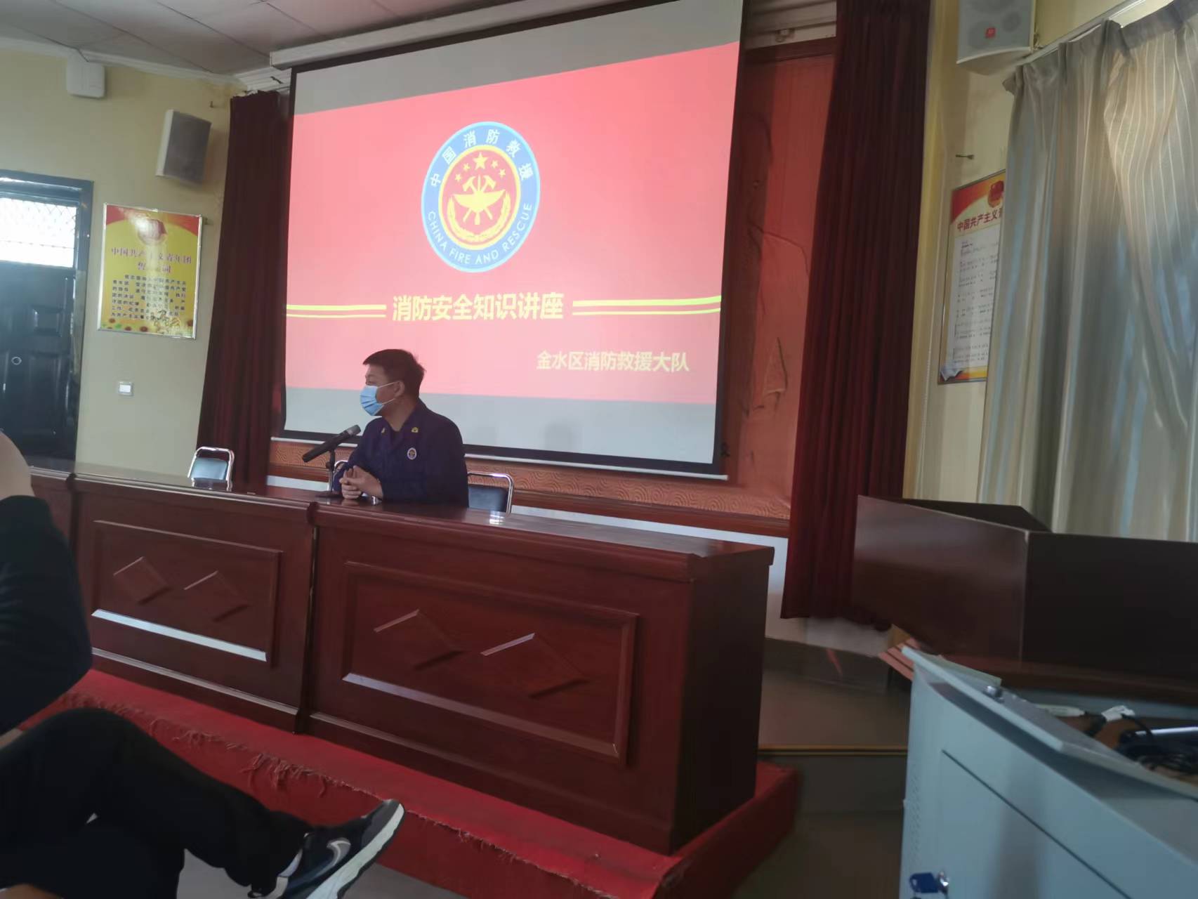 2022年4月19日下午,应我校学生处及保卫处邀请,金水区消防大队冉然警官及在道德讲堂作了题为《校园消防安全知识》的讲座,各班在教室通过录播节目收看。