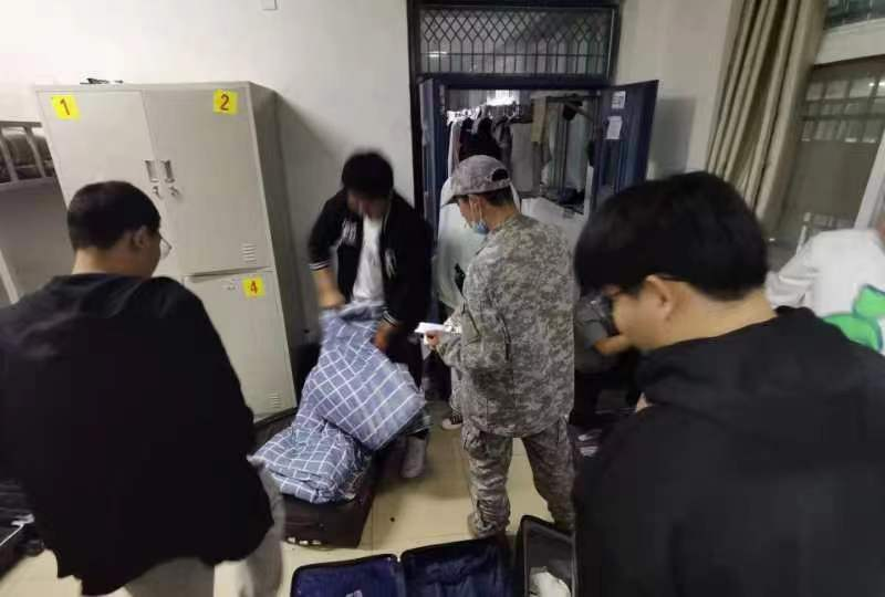 每天晚上晚自习前,陆陆铭教官团队临时抽宿舍楼层,通知班主任集合学生开始对宿舍逐一检查。本次排查遵循全方位、无死角的原则,重点对学生寝室内有无明火、有无私拉乱接电线、有无违章电器使用、有无携带管制刀具等其他有安全隐患的物品等现象进行检查。在检查过程中,了解到大部分学生的安全防范意识较强,宿舍安全状况总体较好。排查中也发现了有个别学生违规购买香烟、火机、酒、各种管制刀具等违禁物品。学生处接下来将不定期开展多轮寝室安全、卫生检查工作,进一步掌握学生情况,排查宿舍安全隐患。