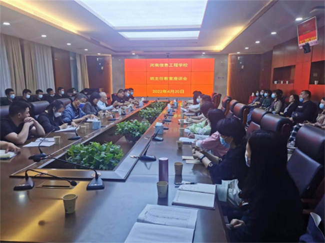 4月20日下午,我校在实训楼六楼会议室召开班主任教官座谈会。黄磊校长、宋廷楷书记出席会议,河南陆陆铭教育科技有限公司冯京铭董事长、学生处冀红海处长及蒋惠英副处长、全体班主任及全体驻校教官参加此次会议。