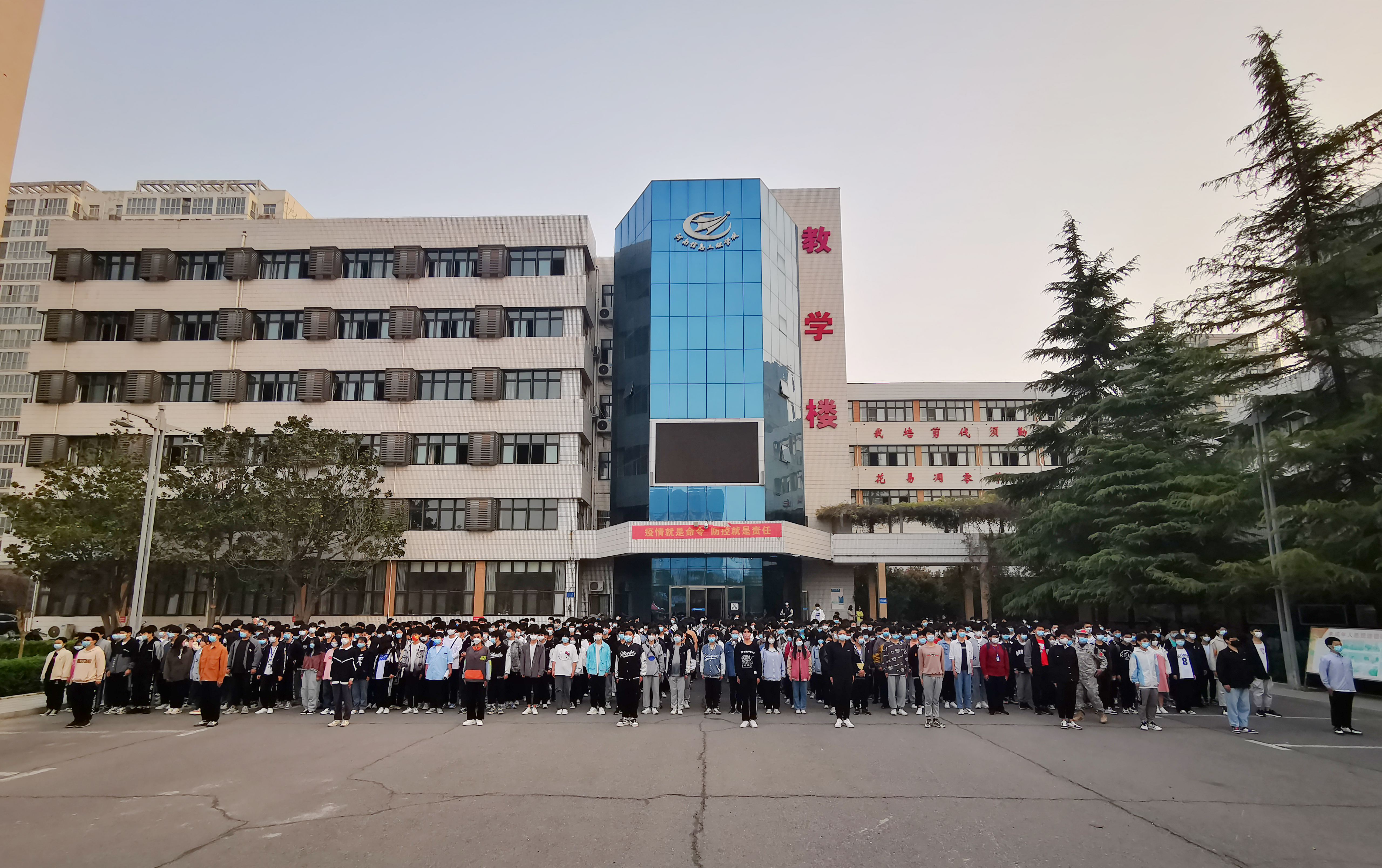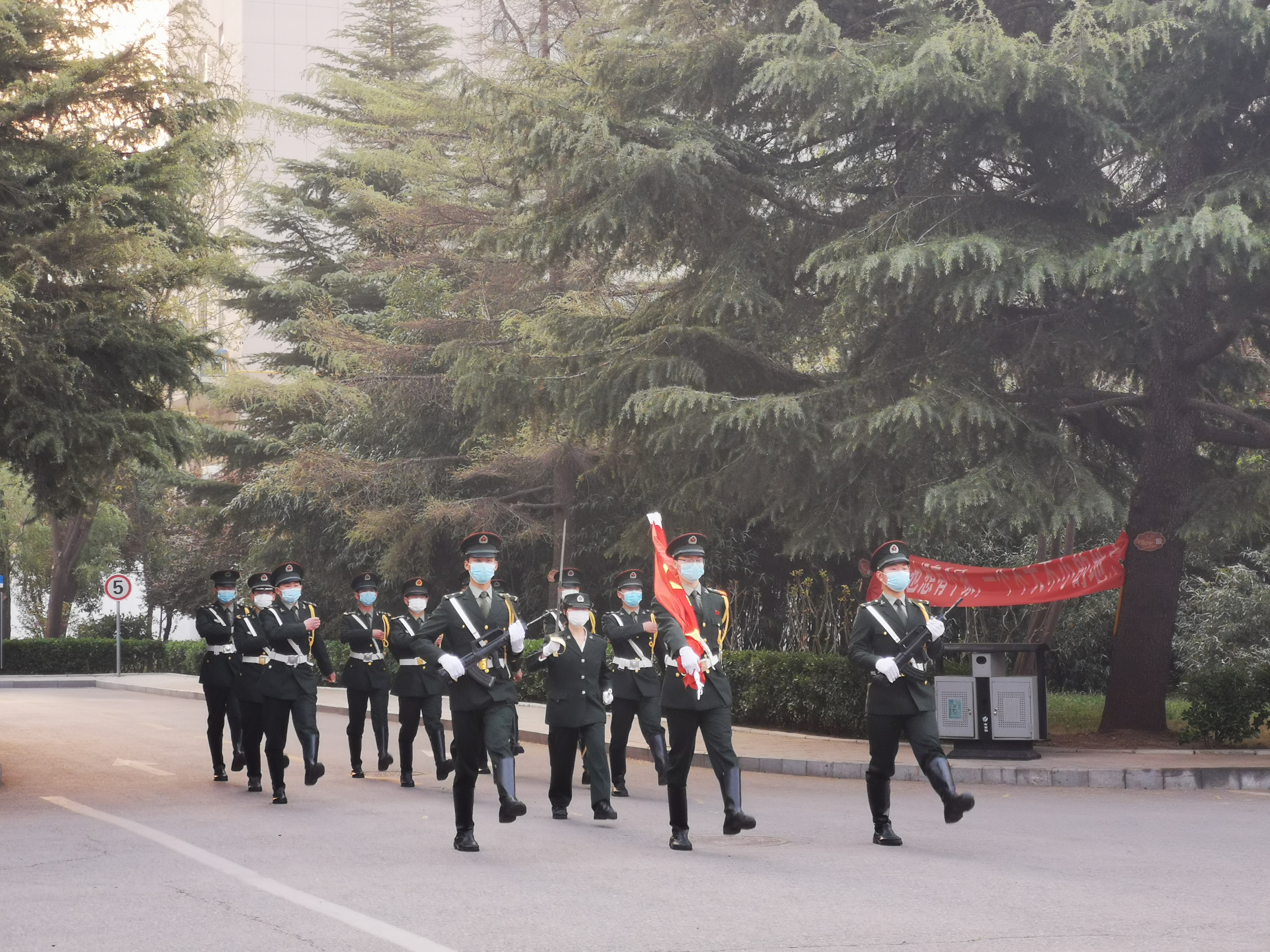 仪式在庄严肃穆的气氛中开始。迎着代表着希望与未来的朝阳,国旗护卫队迈着坚定有力的步伐护送国旗走向国旗台。伴随着缓缓升起的五星红旗,全体师生神情严肃,用最庄严的注目礼向冉冉升起的国旗致敬!