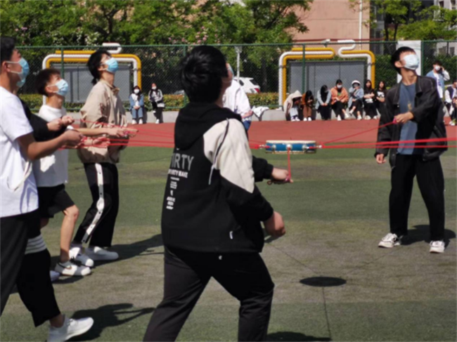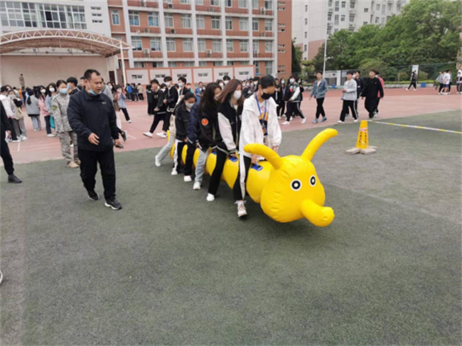 4月30日,首先开展的是“毛毛虫竞速”趣味比赛项目,活动以开始,就吸引了全校学生的关注和兴趣。全校共组织190支参赛队,在各班班主任的指导下,各班班委积极排兵布阵,力气大的同学打头阵,身材轻盈的同学在中间,长腿同学在最后压阵。大家齐心协力、奋力向前、竞争激烈,在一片欢声笑语中结束了一队队的比赛。无论结果成败与否并未影响同学的热情,赛场上展现更多的是同学们相互鼓励、理解和包容,展示了当代青年勇于拼搏、团结协作、乐观向上的时代精神风貌。各班主任也在现场为自己班的学生加油打气。