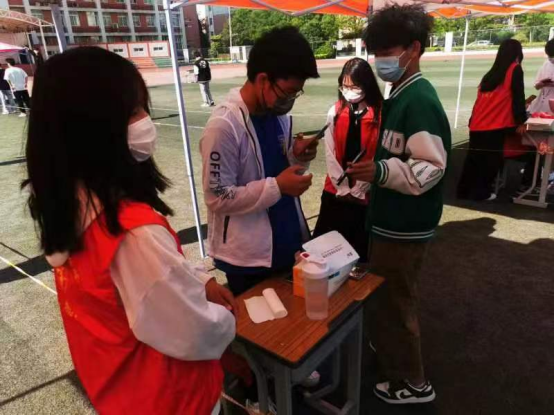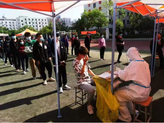 核酸检查有序进行,志愿者们不怕苦不怕晒