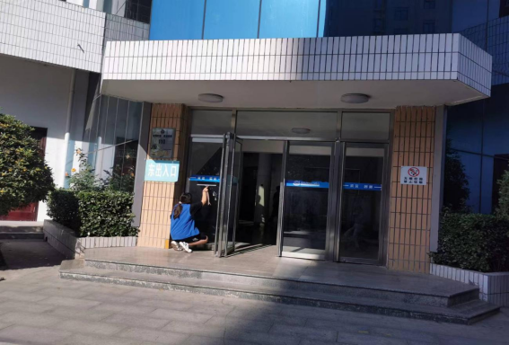 劳动周学生在擦拭玻璃,依然是岁月静好的模样