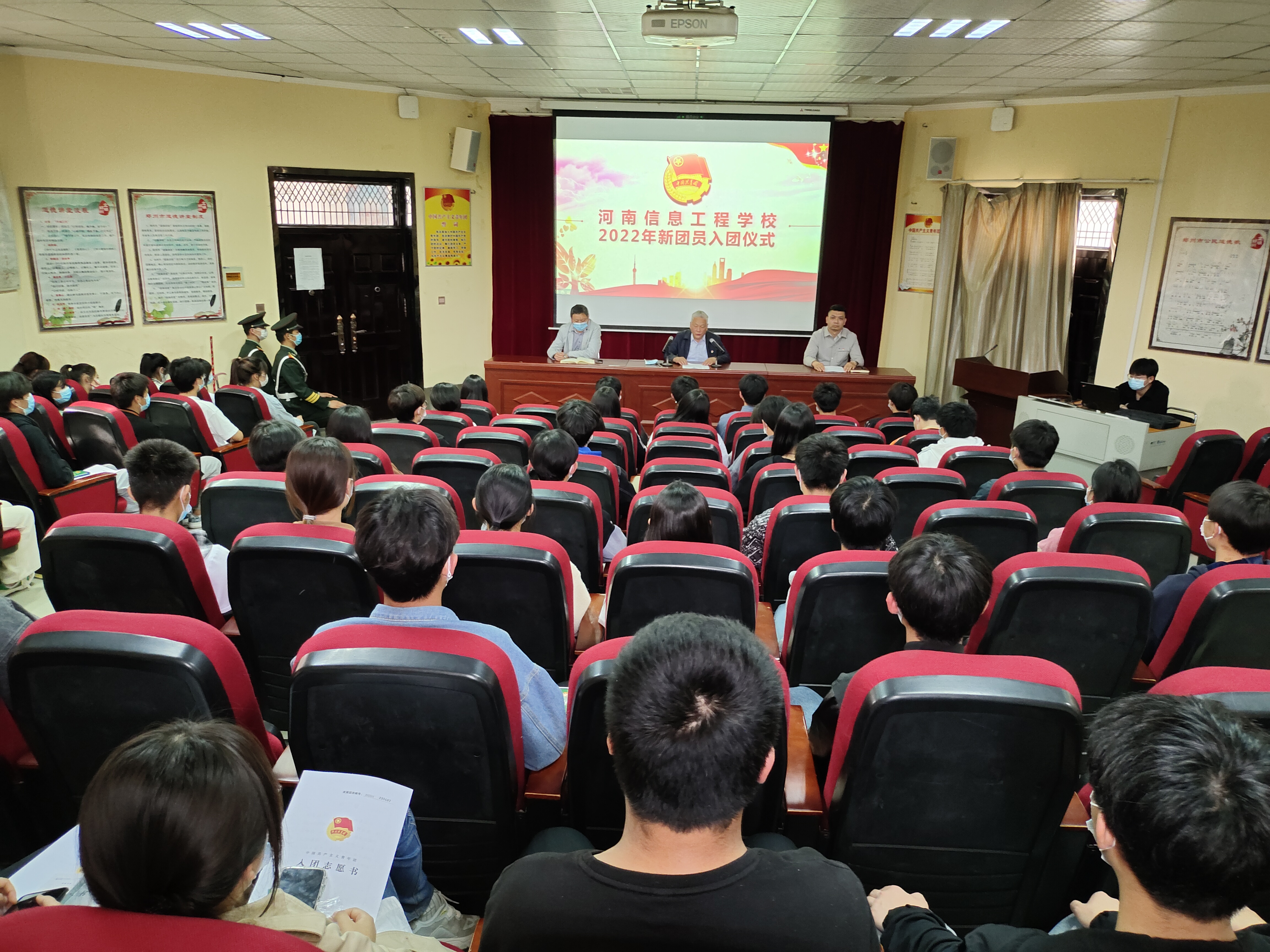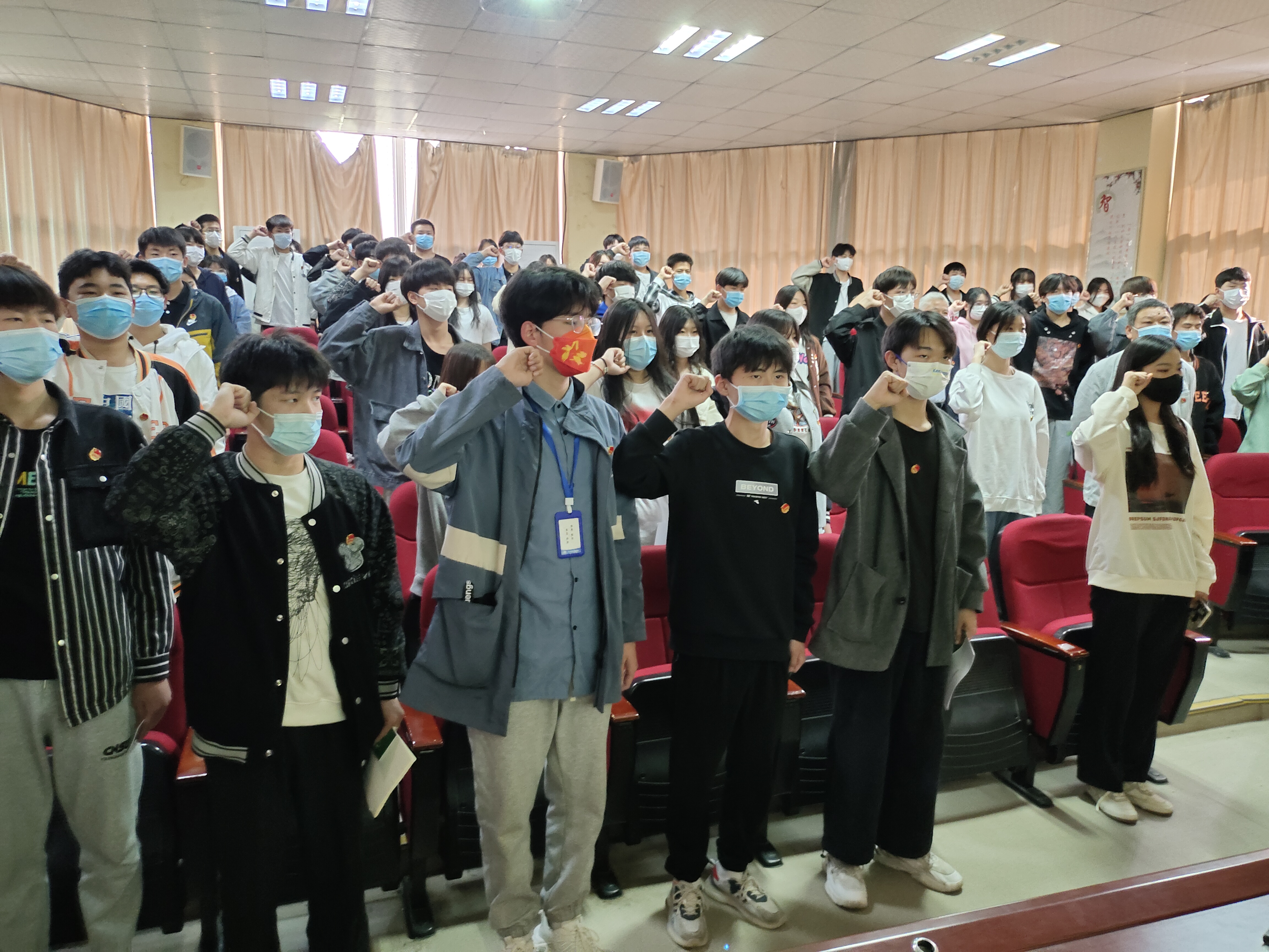 入团仪式在雄壮的国歌声中拉开序幕,全体起立奏唱国歌,现场气氛庄严、肃穆。礼毕,由李中显主任宣读了我校发展团员决定。此次我校团员发展对象为2020级、2021级在籍学生,经过开展了一系列理论学习、实践活动等培训考核,共有247名入团积极分子成为了光荣的中国共产主义青年团团员。