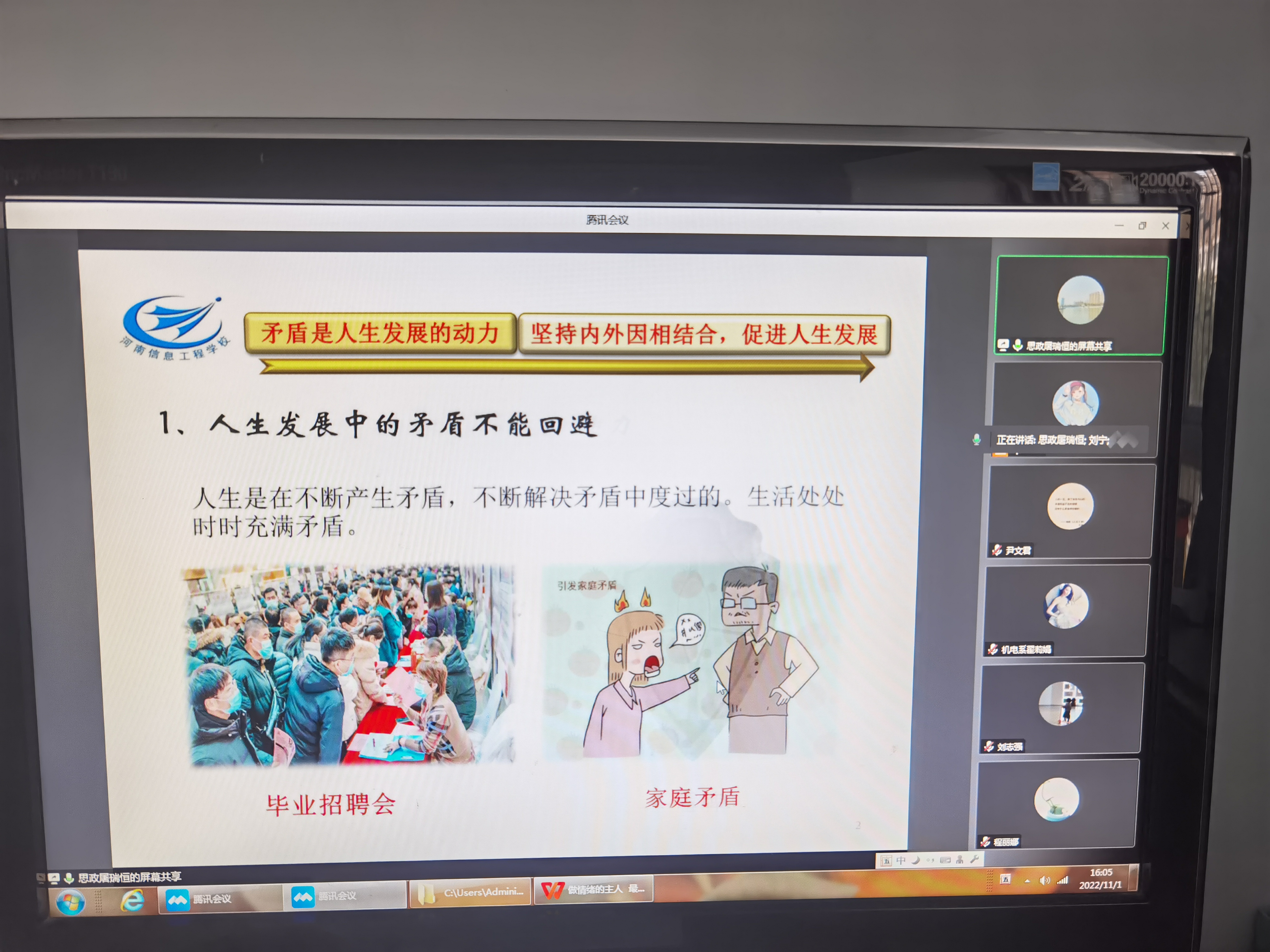 11月1日下午,基础部思政教研室利用腾讯会议平台开展了线上集体备课活动。活动由思政教研室主任刘宁老师主持,思政教研室全体老师参加。