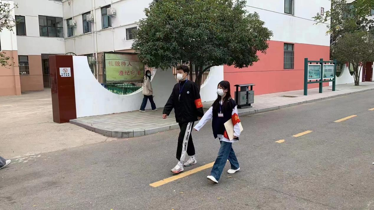 每天课外时间,校园里到处都有学生干部在值班巡逻,为将病毒彻底隔离在墙外,避免校园围墙成为疫情防控的缺口,纪律部每天安排学生三步一岗、五步一哨,并不间断进行巡逻。组织各项排查工作,杜绝防疫期间学生翻墙、扎堆聚众、不戴口罩等现象。