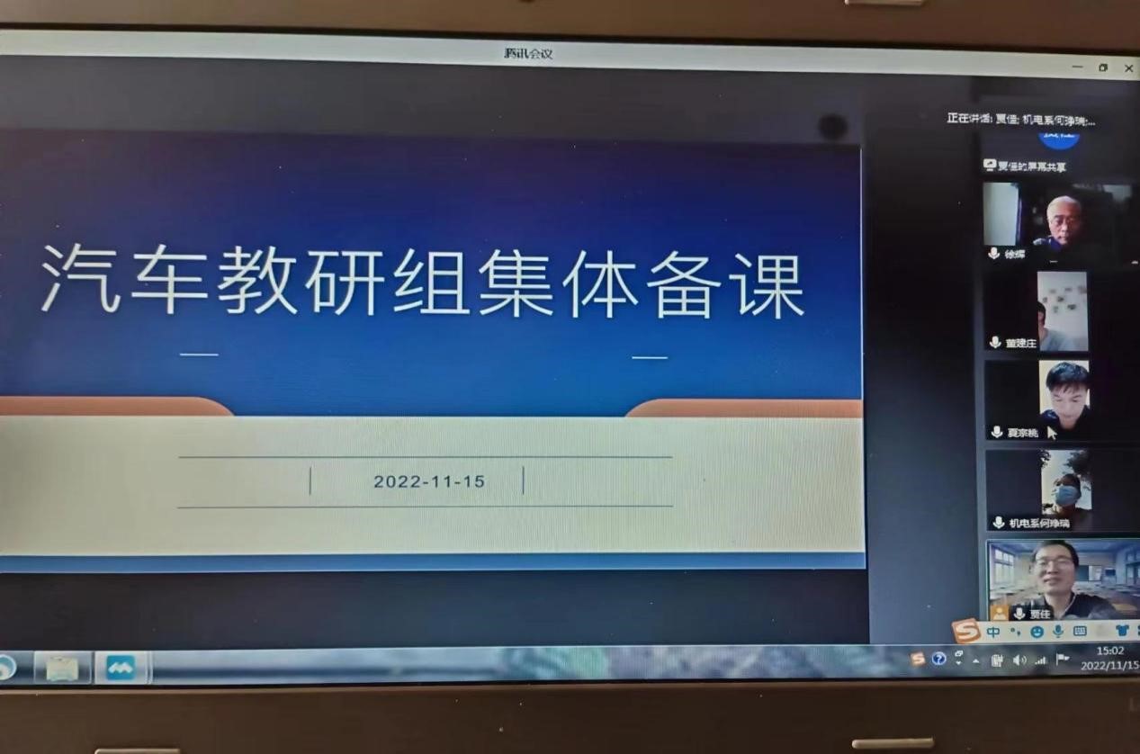 11月15日下午,机电工程系汽车教研室通过网络平台开展集体备课活动,备课活动由汽车教研室贾佳老师主持,教研室全体老师参加。
