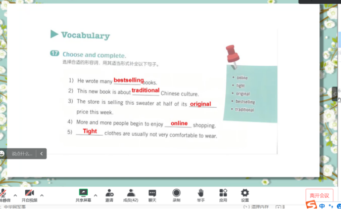 当前,疫情形势严峻,10月份以来,我校英语课堂相继转至线上进行。全体英语教师踔厉奋发、开拓创新,对标中职英语新课标,竭力上好每一节课,确保网课质量,英语网络课堂内容丰富精彩。
