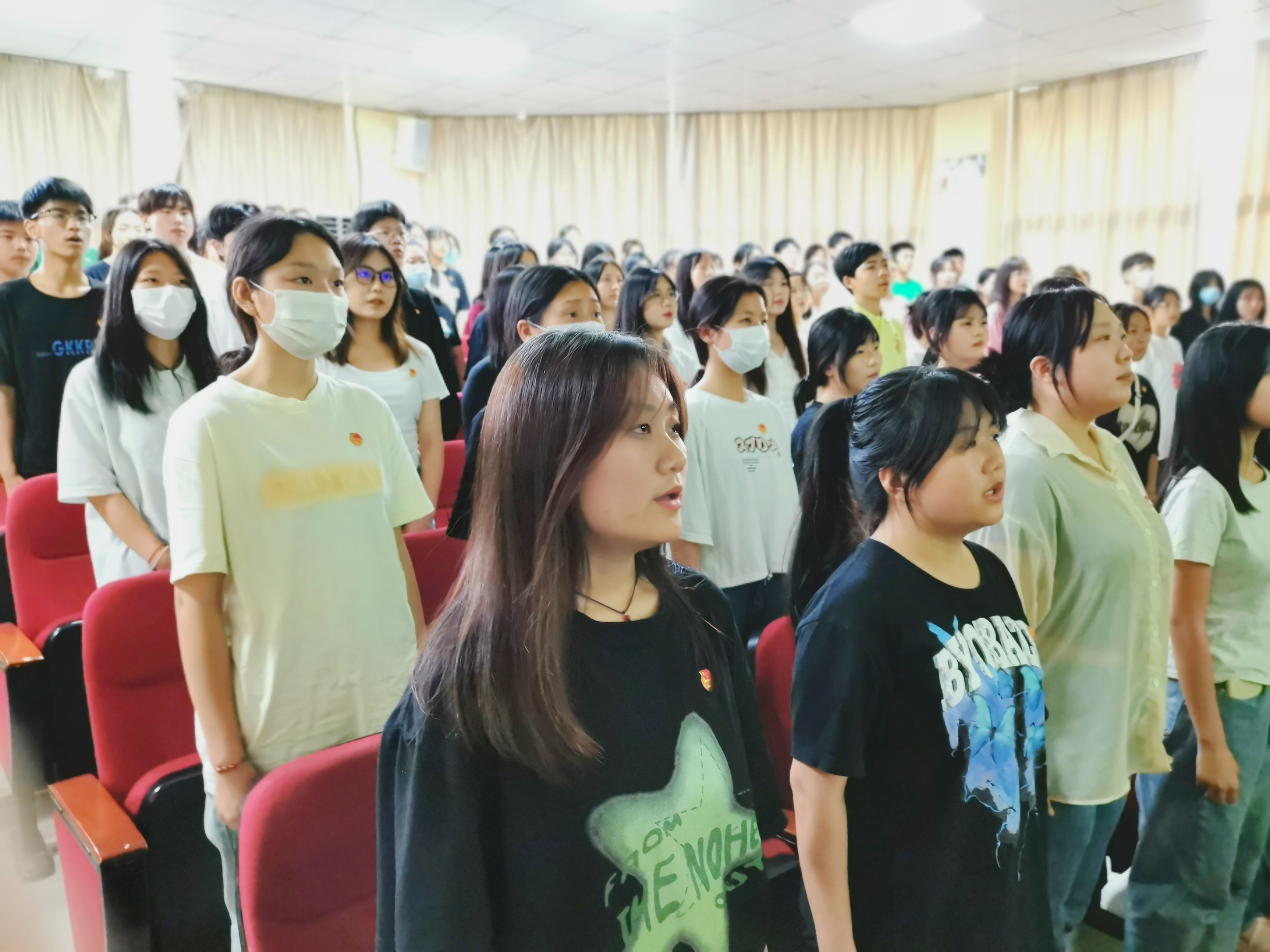 入团仪式在庄严的《中华人民共和国国歌》中正式拉开序幕。