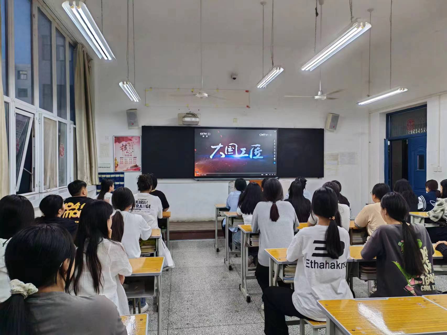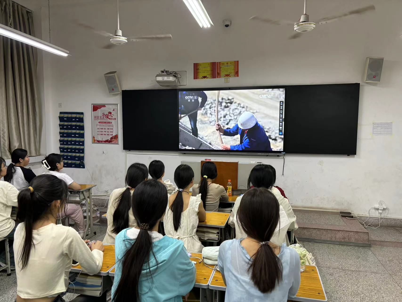 同学们在认真观看影片