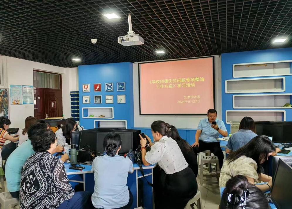 会后,系主任李强带领全体教师进行了《新时代高校教师职业行为十项准则》和《学校师德失范问题专项整治工作方案》学习活动。
