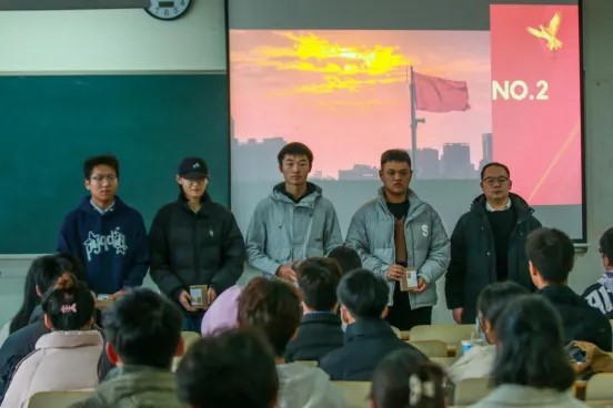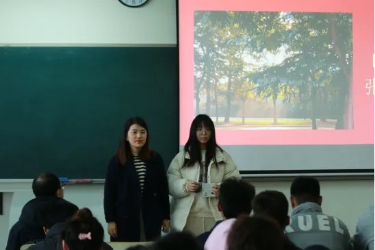 摄影社团指导李昕宇老师及社长杜纳明涵为三等奖获得者颁奖