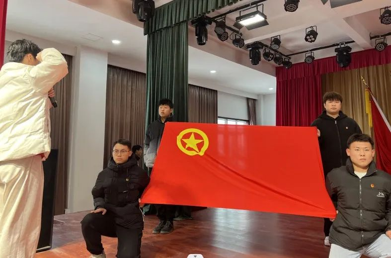 李丹老师为新团员代表授团旗。新团员面向团旗庄严宣誓,立志做好党的后备军。