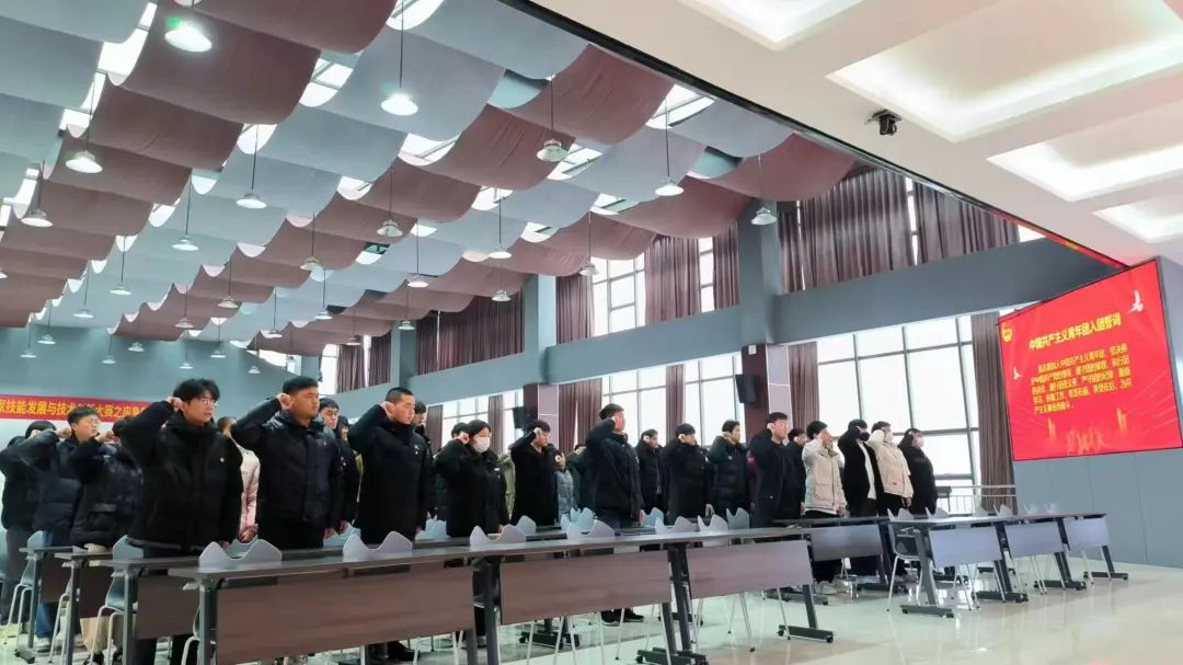 为落实共青团中央关于认真学习宣传贯彻习近平总书记重要讲话精神,动员引领广大团员青年在强国建设、民族复兴伟业中挺膺担当,我校团委于12月12日在五楼报告厅举行2023年新团员入团仪式。仪式由团委陈晨老师主持,团委李丹老师、北校区团委组织干事马浩琼老师及两校179名新团员参加了仪式。入团仪式在雄壮的国歌声中拉开帷幕。