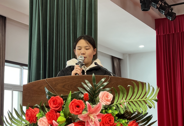 高职信息工程系网络技术22-4班卢梦珂同学作为老团员代表发言,她向新团员发出号召,要在团组织的领导下,脚踏实地,虚心学习,不断进取,真正从思想上加入到团组织中去,以实现自己的入团誓言。