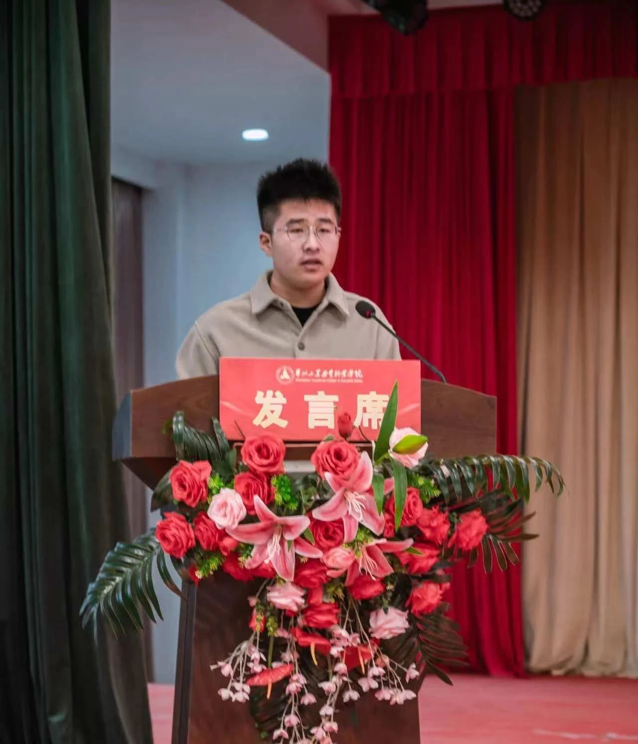 团校学员申涵文代表团校第一期培训班全体同学发言。他表示,全体学员将以饱满的热情和认真的态度投入到团校的学习中,努力提升自己的思想政治素质和综合能力,积极参与各项团校活动,在学习和实践中不断成长进步,为学校的发展和共青团事业贡献自己的力量。