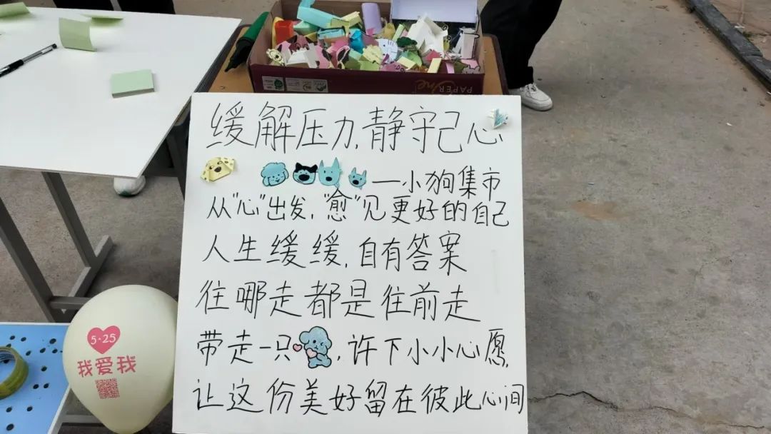 静守己心为深化心理健康知识的普及,提升全校师生心理保健意识与健康水平,软件技术系积极响应学校要求,开展2024年“5·25”心理健康教育活动,切实推动学生身心全面和谐健康发展,更好地营造校园的心理教育氛围。2024年5月26日软件技术系举办的“缓解压力,静守己心”小狗集市活动在学生宿舍楼前圆满落幕。