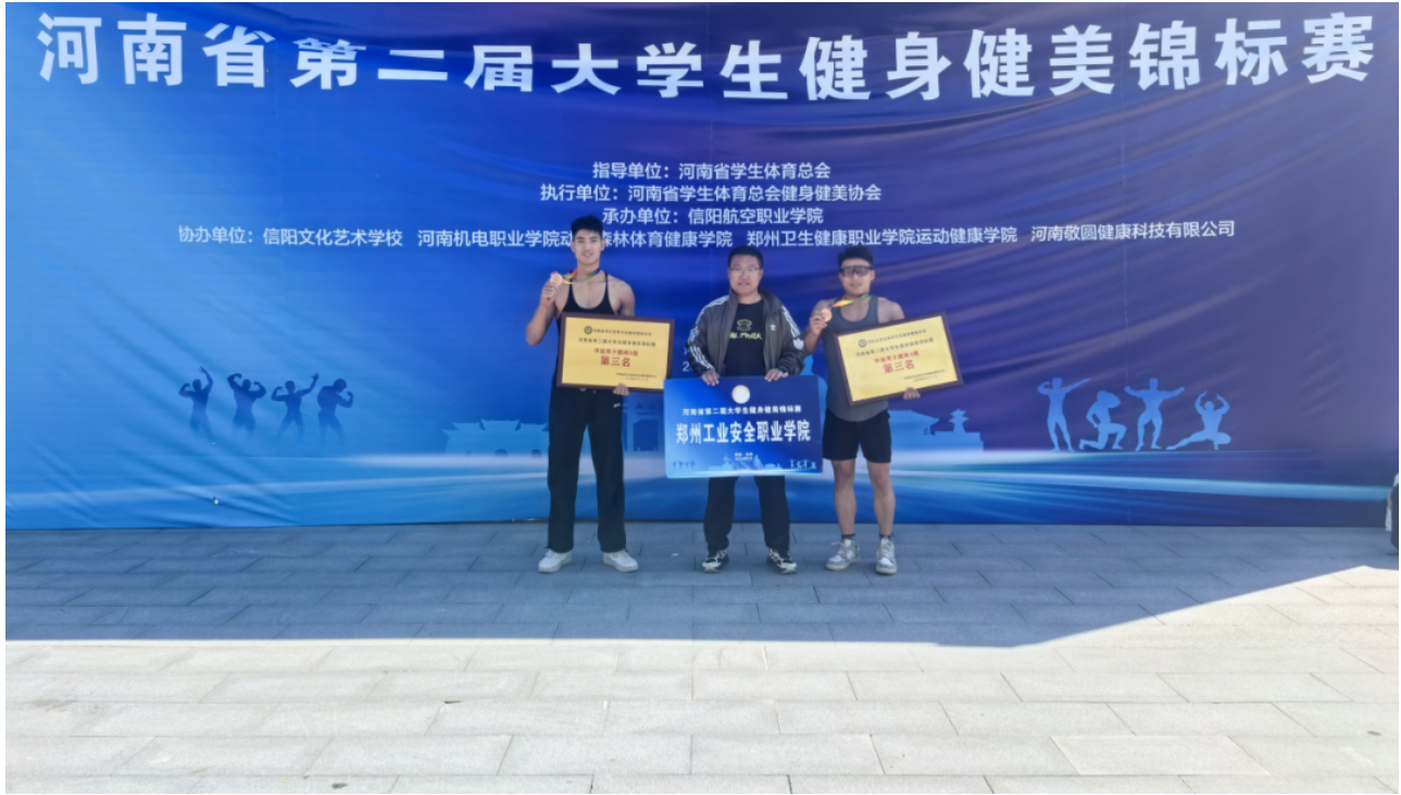 9月20日至22日,河南省第二届大学生健身健美锦标赛在信阳航空职业学院举行,来自全省各高校的二百余名参赛选手汇聚于此,本次比赛包含了传统健美、古典健美、男子健体、比基尼健身、男子健身模特、女子健身模特等项目。我校参赛队在公共体育部主任卞澜涛的指导下,由公共体育部教师布正浩带队参加此次比赛。我校公共体育部体能训练专业23-1班袁聚森和运动健康指导专业23-1班王仁杰两名同学参加比赛。