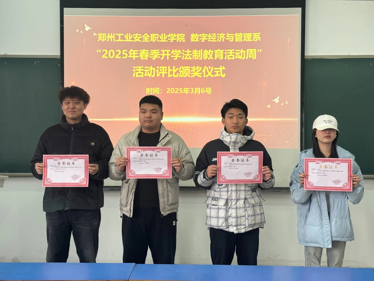 经过系部专业评委团队的现场评比,一批优秀作品脱颖而出。3月6日,数字经济与管理系举办了活动评比颁奖仪式,对表现优异的班级和作品进行了表彰。获奖班级代表们表示,通过参与此次活动,不仅学到了丰富的法律知识,提高了法治素养,还培养了团队合作精神和创新能力。